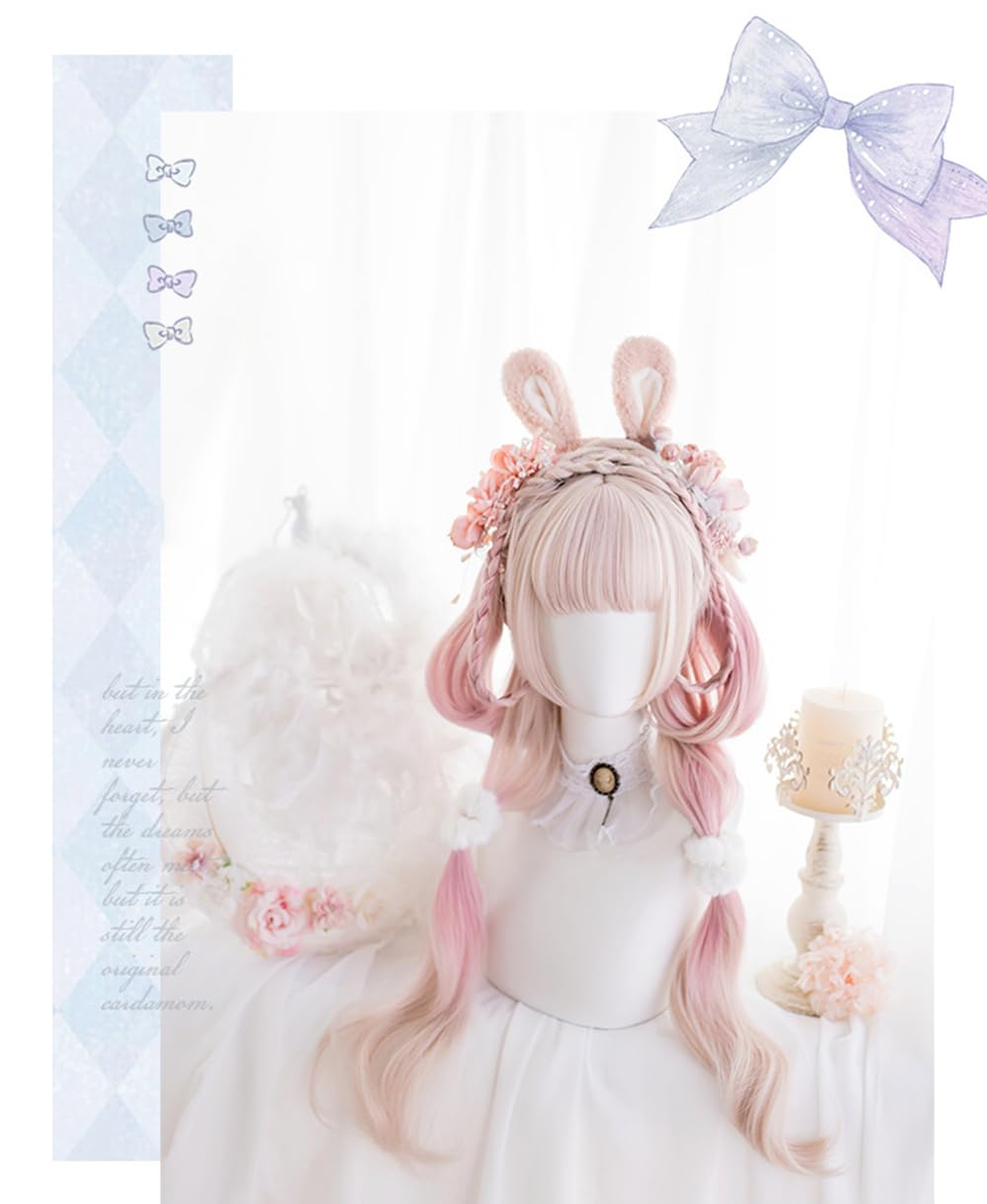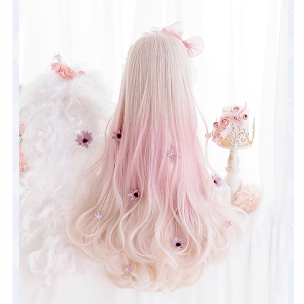 Akixen レディース かつら ロリータ ロング カール ピンク ウィッグ ピンクのグラデーション 原宿風 小顔 耐熱性 コスプレ ヘアネット ファッション イベント ハロウイン 変装 仮装 お祭り シャクヤクウサギ | Bloomia