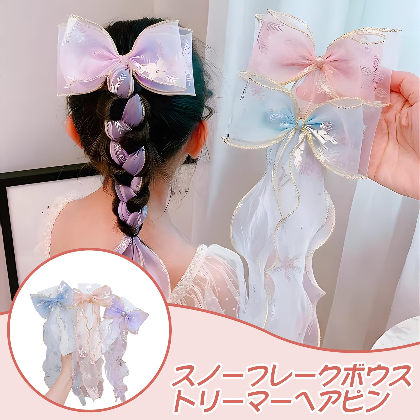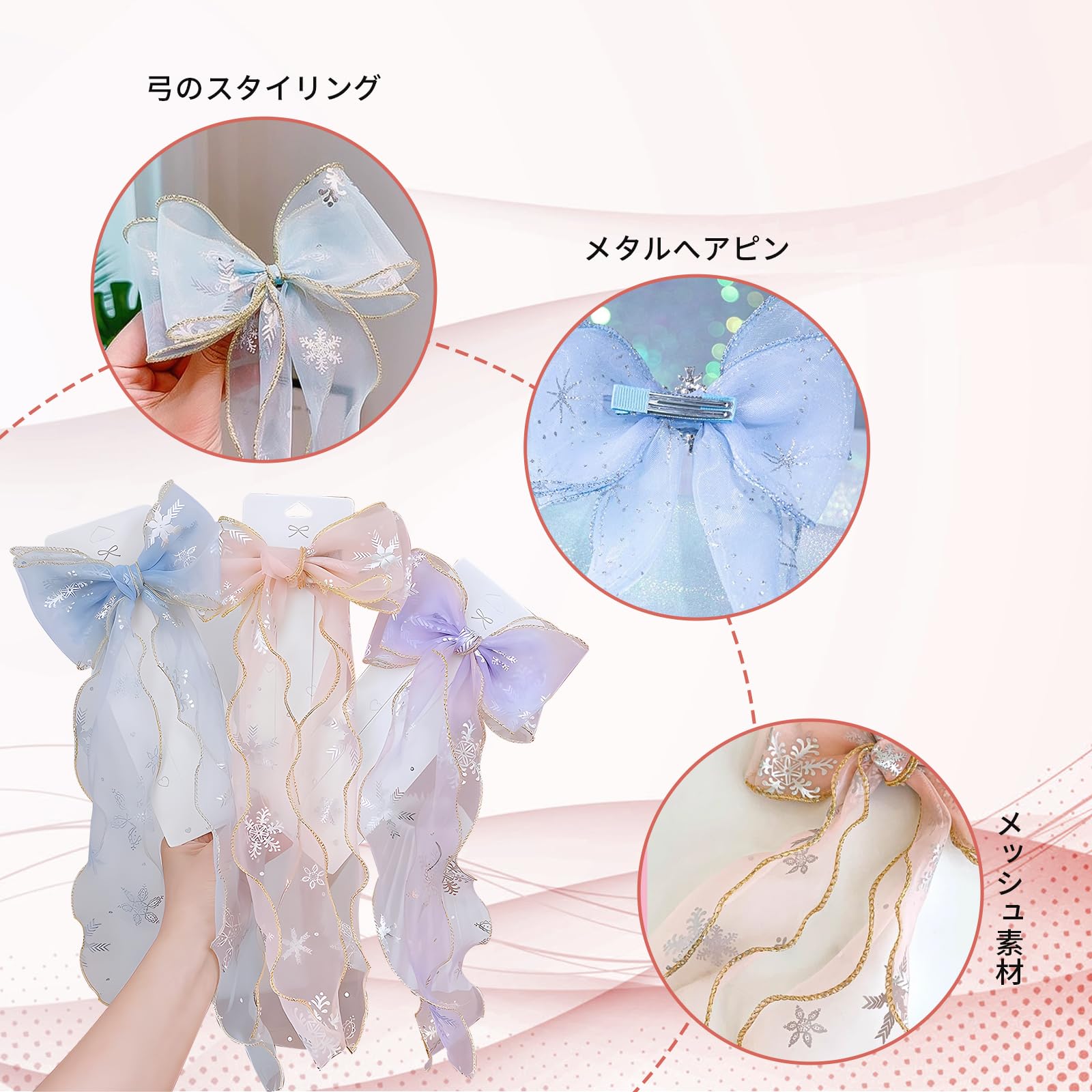 Coollooda バレッタ ヘアピン ヘアクリップ (3点セット) リボン 蝶結び 髪飾り プリンセス リボン ヘアアクセサリー 髪を傷めない 可愛い おしゃれ 子供 発表会 誕生日 コスプレ 撮影 パーティー 跡がつかないヘアピン ピンク パープル ブルー | Bloomia