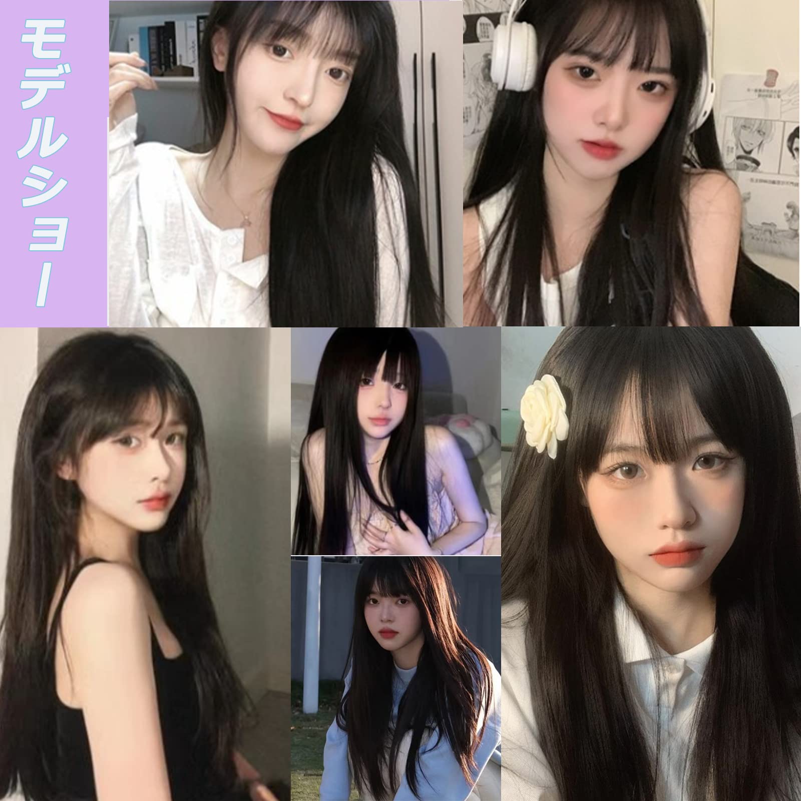 PRETOLE ウィッグ ロング ストレート フルウィッグ 黒髪 レディーズ かつら つけ毛 前髪ウィッグ ネット付き 小顔効果 自然 原宿系 軽い 耐熱 高温 可愛い おしゃれ ファッション 日常 女装 コスプレ (ブラック) | Bloomia