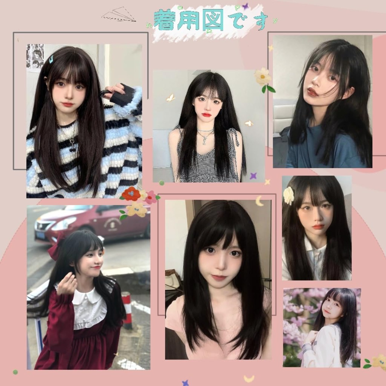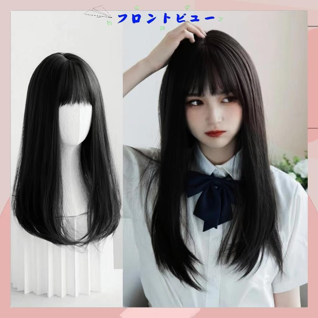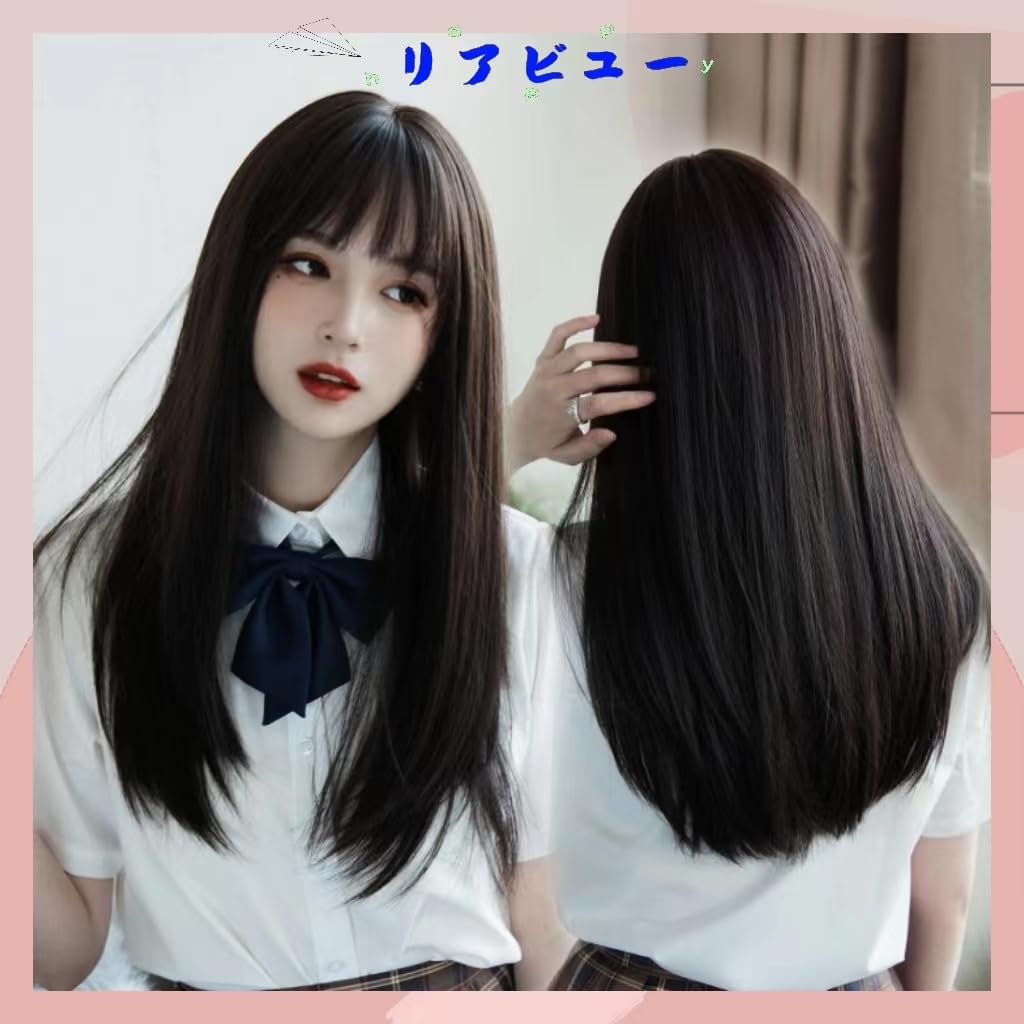 ウィッグ ロング黒髪ストレートヘアフルウィッグ ファッションロリータコスプレネット 女性 小顔 自然な髪型 原宿顔 人気 耐熱かつら 黒茶