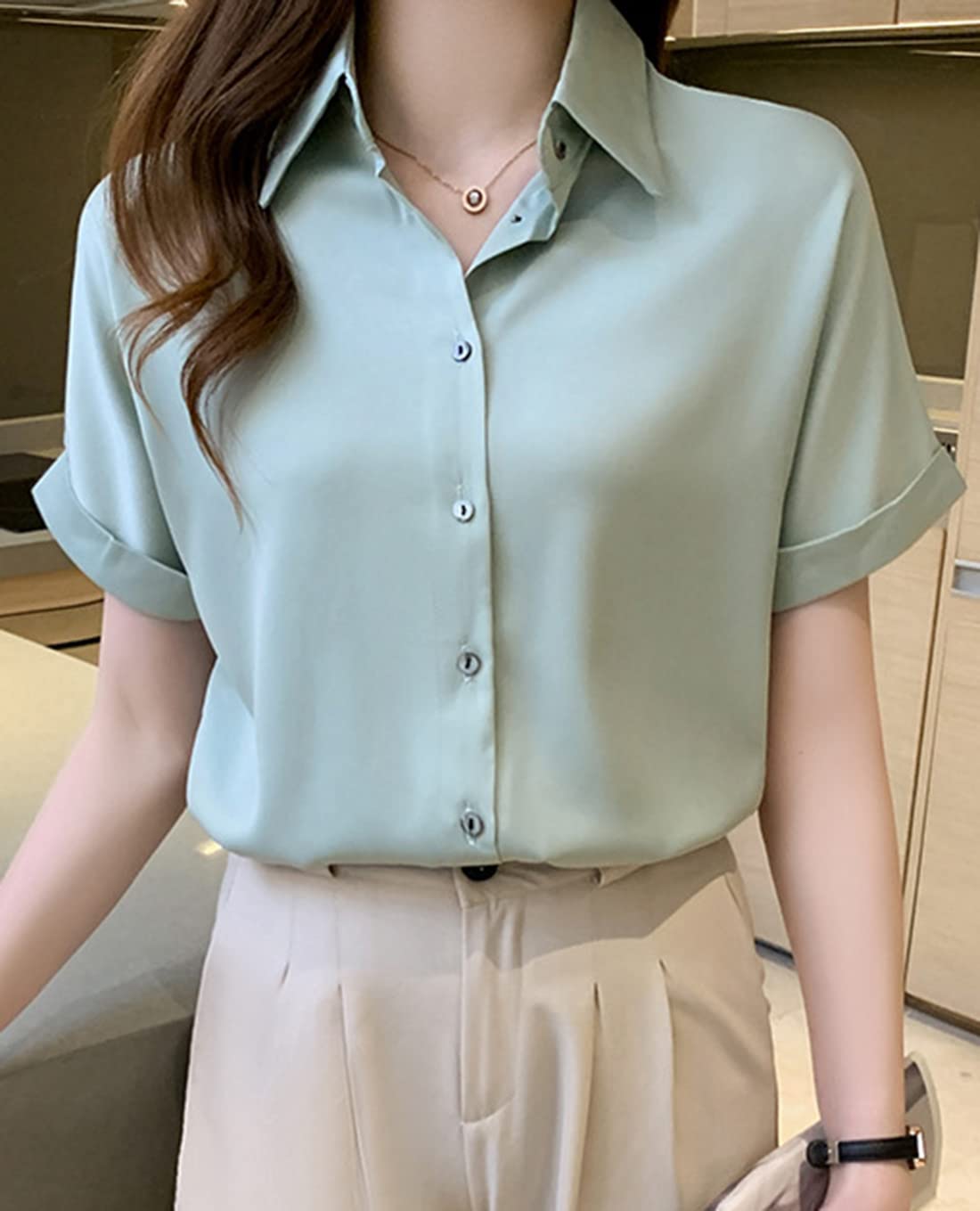 [OKJCON] シャツ レディース 半袖 ブラウス シフォン vネック オフィス 夏 ゆったり 無地 おしゃれ 大きいサイズ