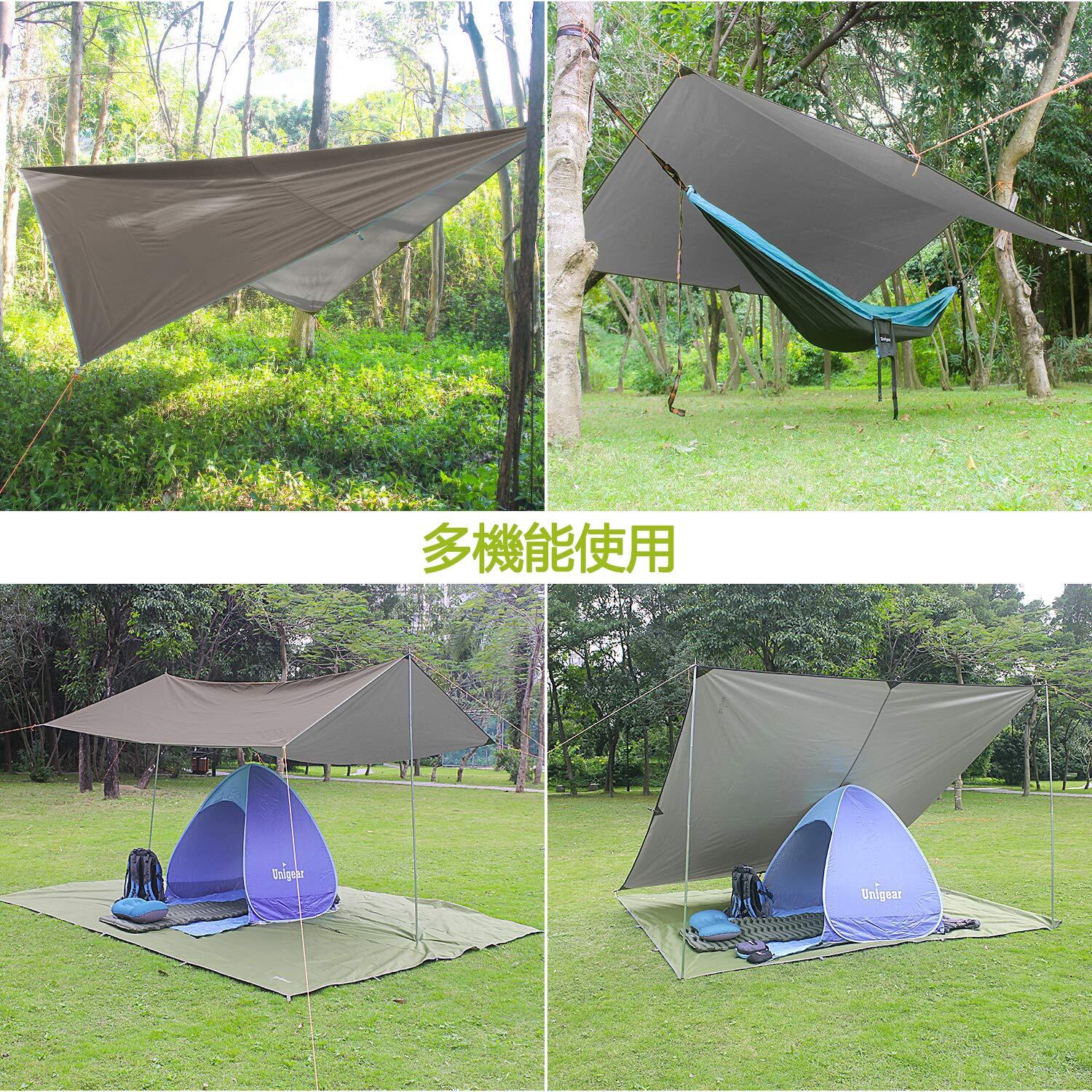 Unigear 防水タープ キャンプ タープ テント 軽量 日除け 高耐水加工 紫外線カット 遮熱 サンシェルター ポータブル 天幕 シェード アウトドア 収納ケース付 2-6人用 4サイズ (ブラウン M(220*240)) | Bloomia