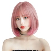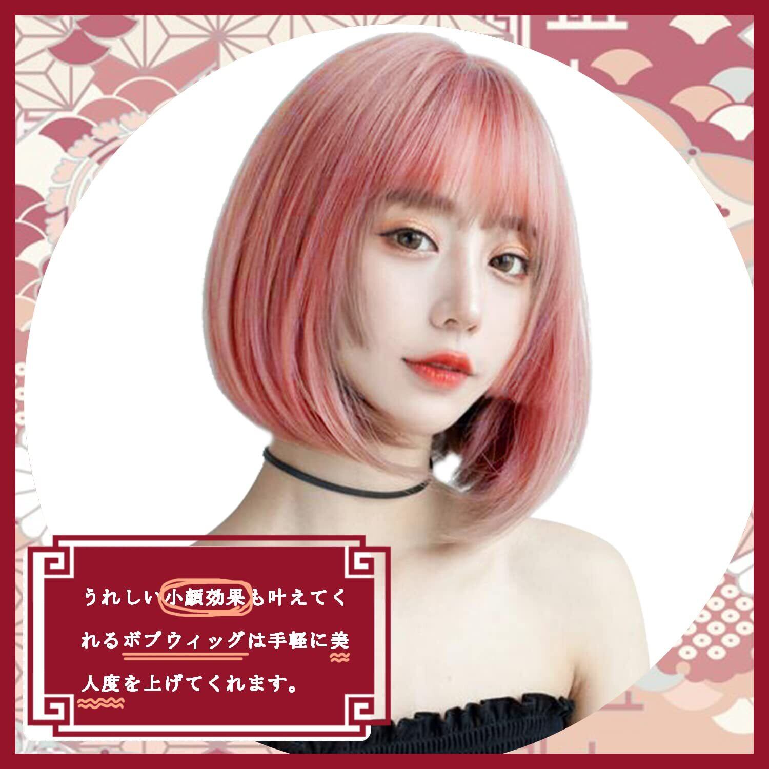 FESHFEN ウィッグ ボブ ショート 姫カット フルウィッグ かつら 姫髪 レディーズ ストレート 自然 ハロウィン 小顔 原宿系 ぱっつん前髪 日常 耐熱 チェリーピンク