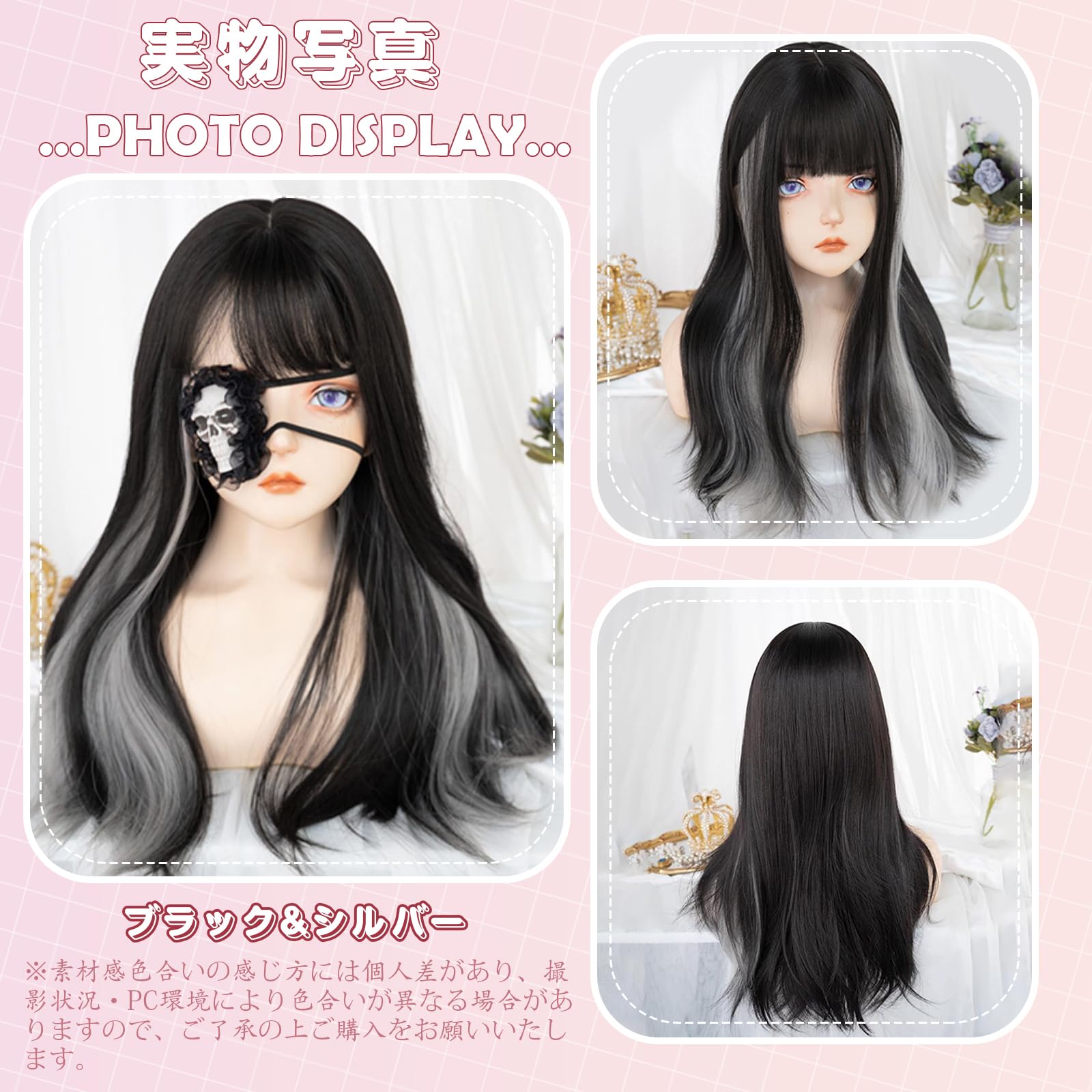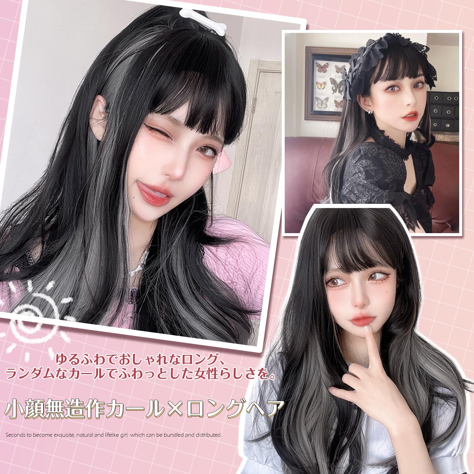FESHFEN ウィッグ ロング カール インナーカラー ウィッグ 巻き髪 ウェーブ フルウィッグかつら 自然 女装 レディーズ グラデーション ほつれカール wig 原宿系 カツラ インナー ぱっつん ファッション コスプレ ハロウィン ロリータ 小顔 人気 可愛い 耐熱 ネット/櫛付き ツートン ブラック&シルバー | Bloomia