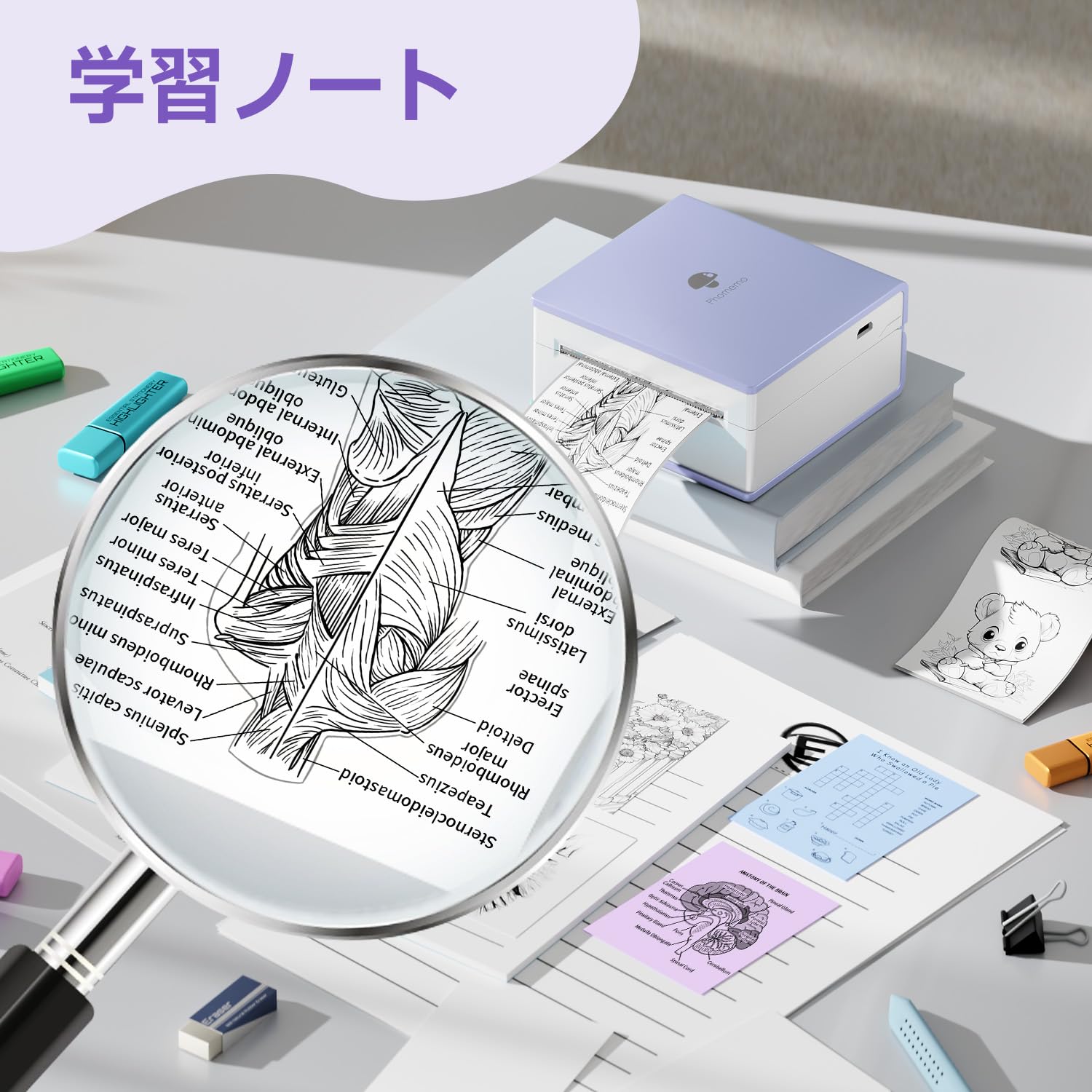 Phomemo M02は、サーマルル式ミニプリンターです。スマホのBluetooth機能を介して、無料専用アプリ「Phomemo」を接続します。さまざまな機能を簡単に使用して、かわいいシール、ビンテージ写真、メモと整理収納ラベルを印刷します