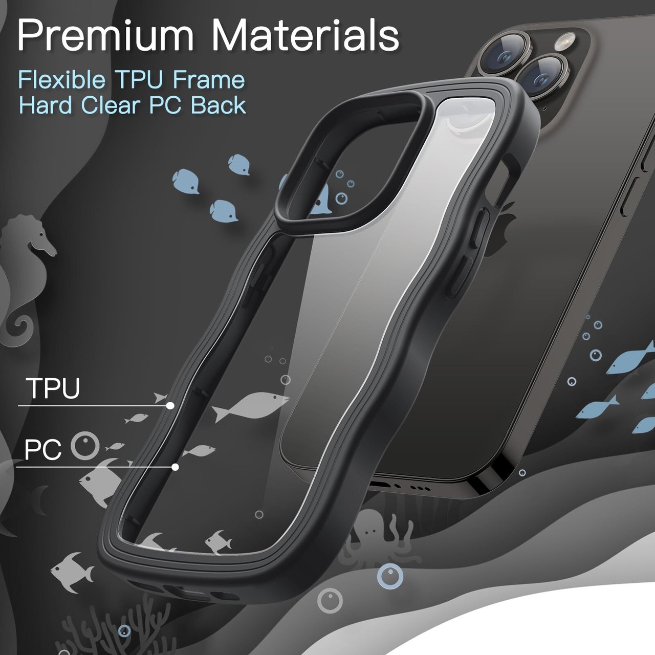 JETech iPhone 14 Pro 6.1インチ用 かわいい ケース 波状フレーム うねうね 耐衝撃 スマホカバー 女性用 女子向け クリア ハードPCバック (ブラック)