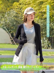 通勤やオフィスでの利用に適した軽量でスタイリッシュなこのカーディガンは、レディースかーディガンとして可愛いカーディガンレディースにも人気。vネックカーディガンデザインで、体型カバーとUVカットの機能も兼ね備え、大きいサイズも取り揃えています。