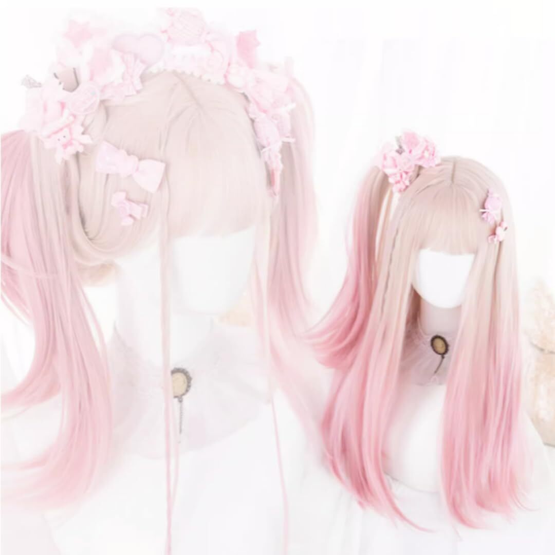 Akixen レディース かつら ロリータ ロング ストレート ツインテール ピンク ウィッグ 薄い粉のグラデーション 原宿風 小顔 耐熱性 コスプレ ヘアネット ファッション イベント ハロウイン 変装 仮装 お祭り | Bloomia