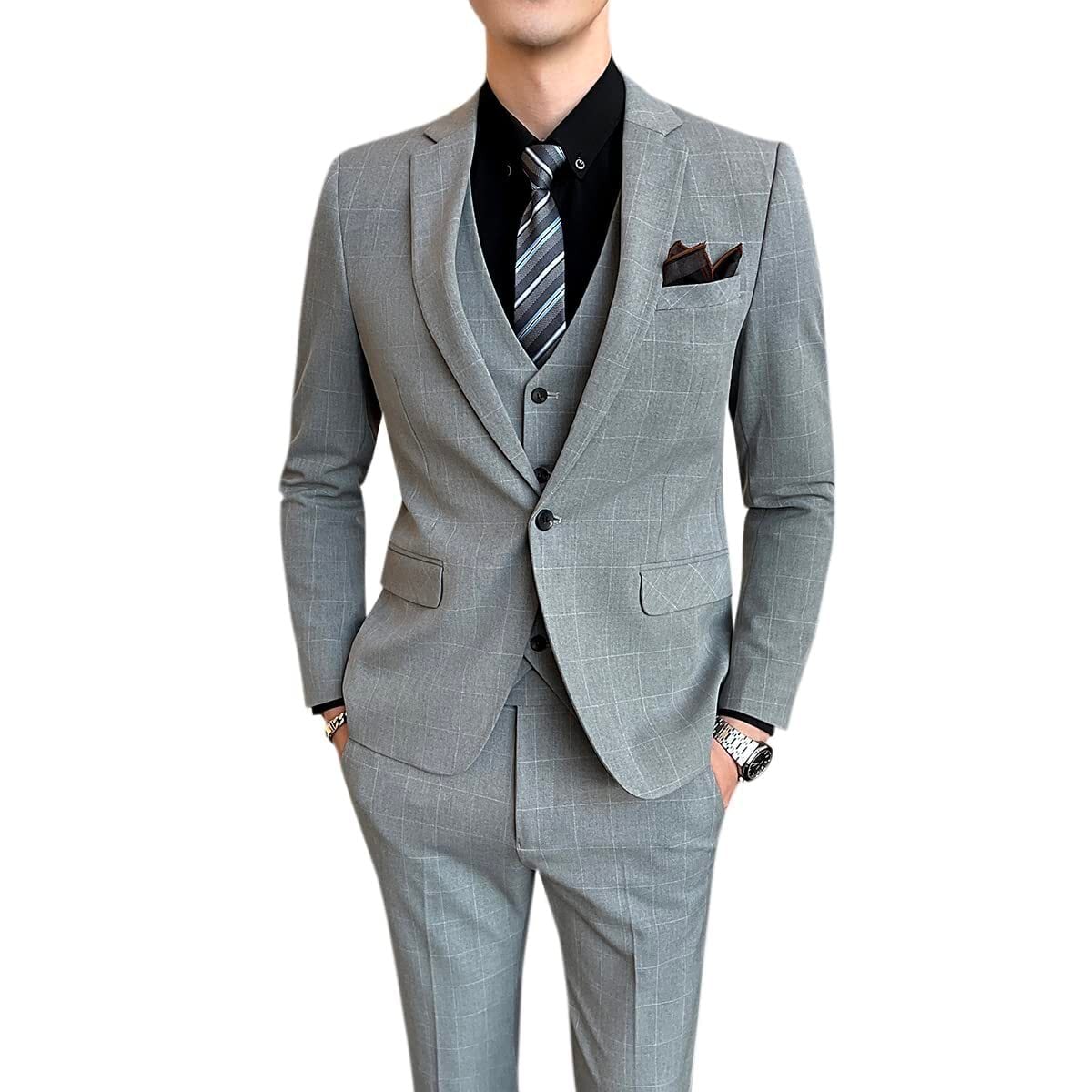 [CEEN] スーツメンズ イギリス風 メンズ スリーピース チェック柄 1つ釦 オシャレ フォーマル