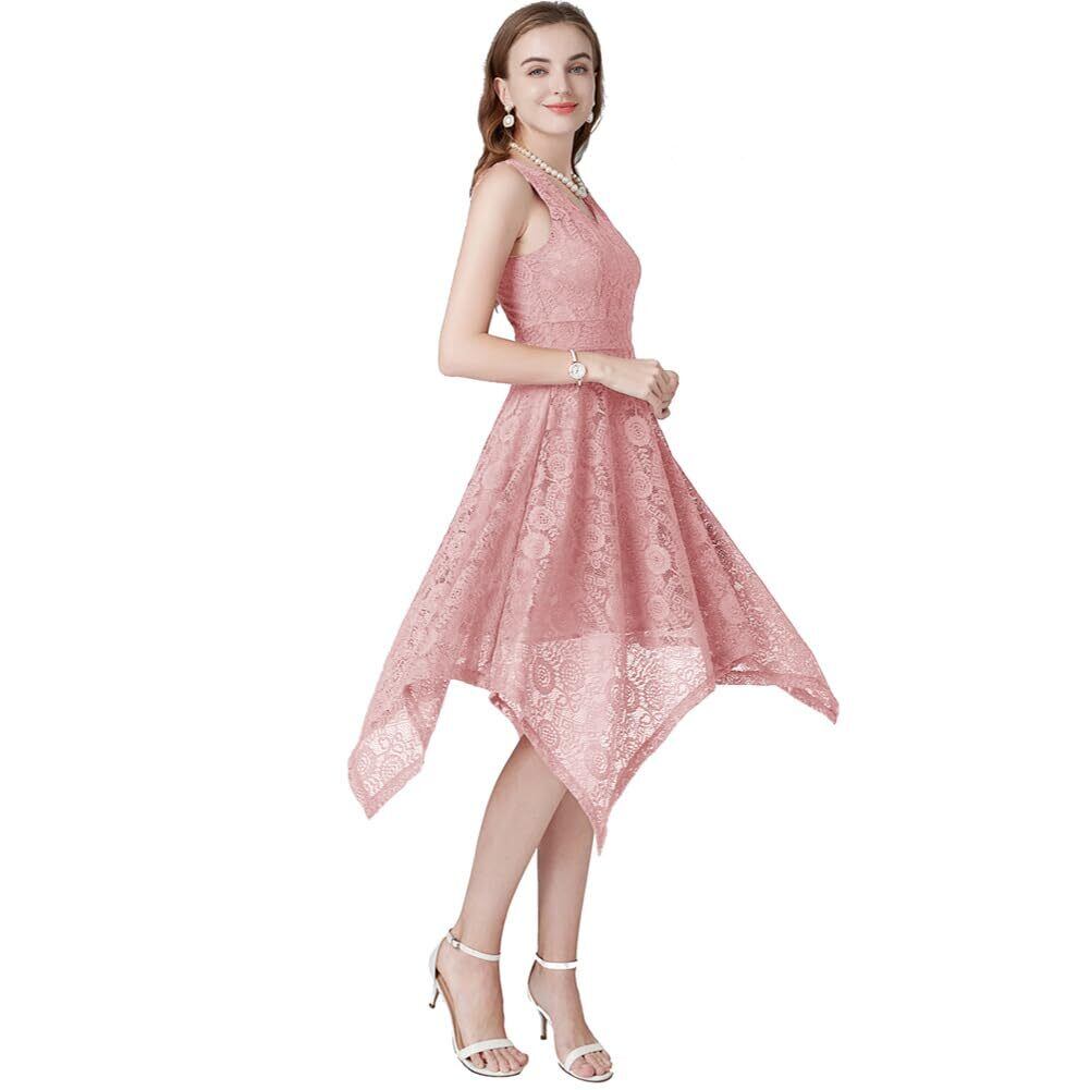 [KADE MEYAIB] レディース ドレス ワンピース フォーマルドレス 総レース Vネック 半袖 膝下 Aライン フレア ハイウエスト 大きいサイズ 着痩せ フォーマル 忘年会 成人の日 結婚式 披露宴 演奏会 デート パーティー 無地 春 夏 秋