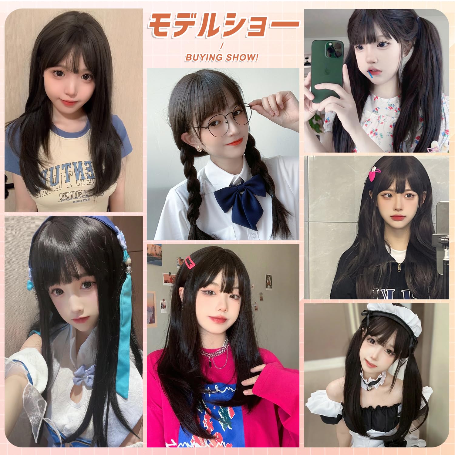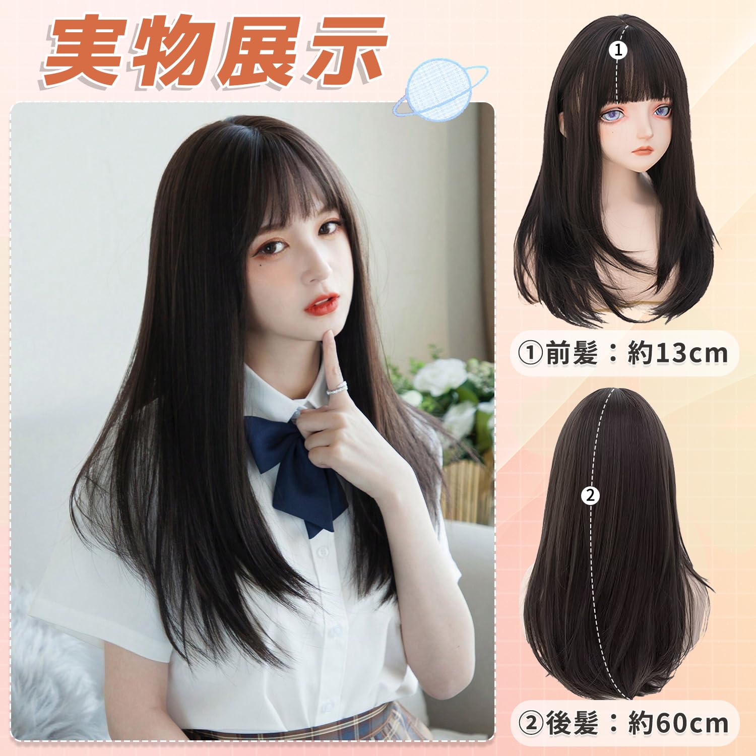 【誰もが憧れる黒髪】みんなが可愛くなれる憧れの黒髪ウィッグ♪黒に近い髪色で透明感のあるヘアカラー!高品質な耐熱フアイバ一を使用してるからよりリアルな質感で自然に地毛と馴染みやすいです。近くで見ても自然な色合いで質感も良いです。