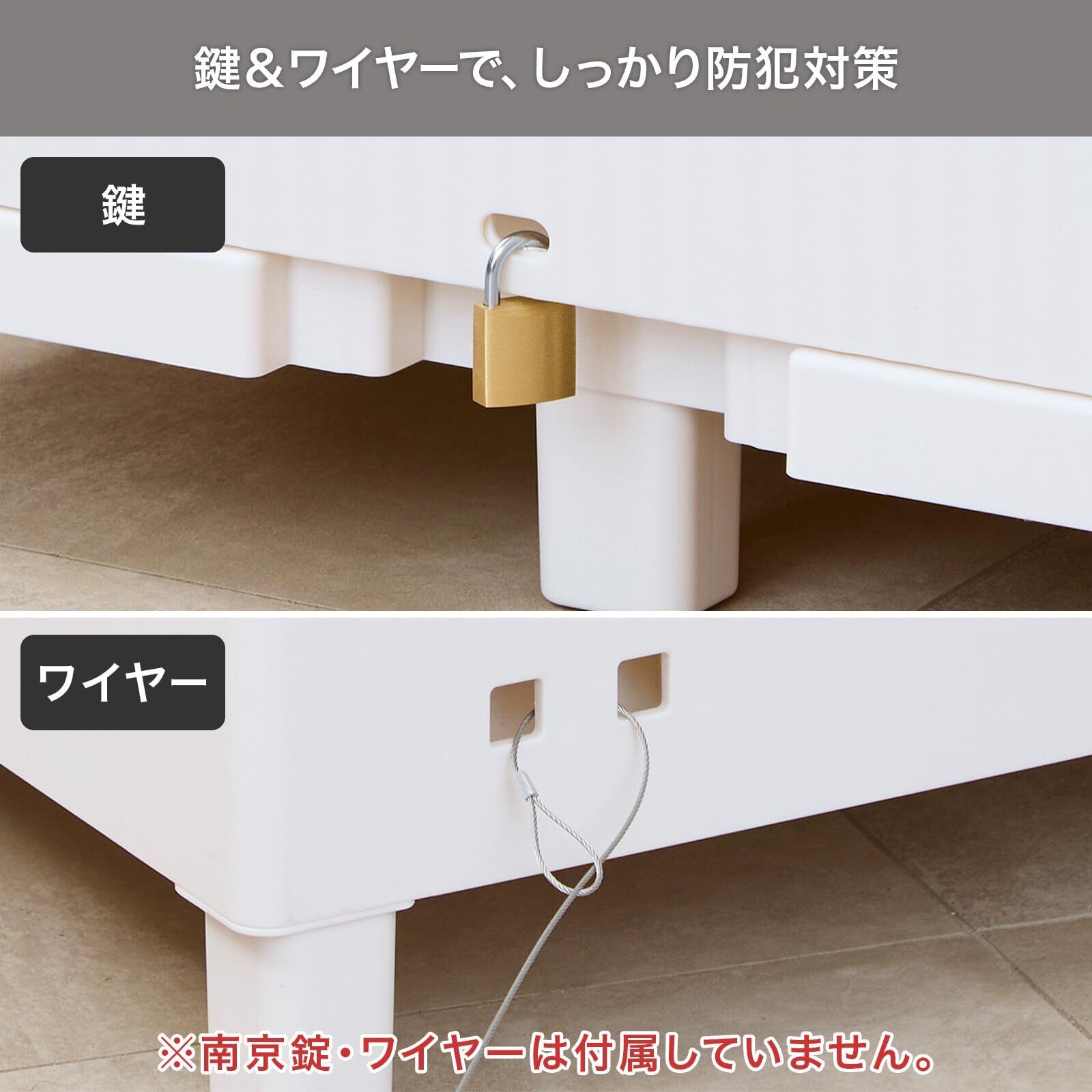 ・取出し扉下部に南京錠取付用の鍵穴、本体背面にワイヤー取付穴を搭載