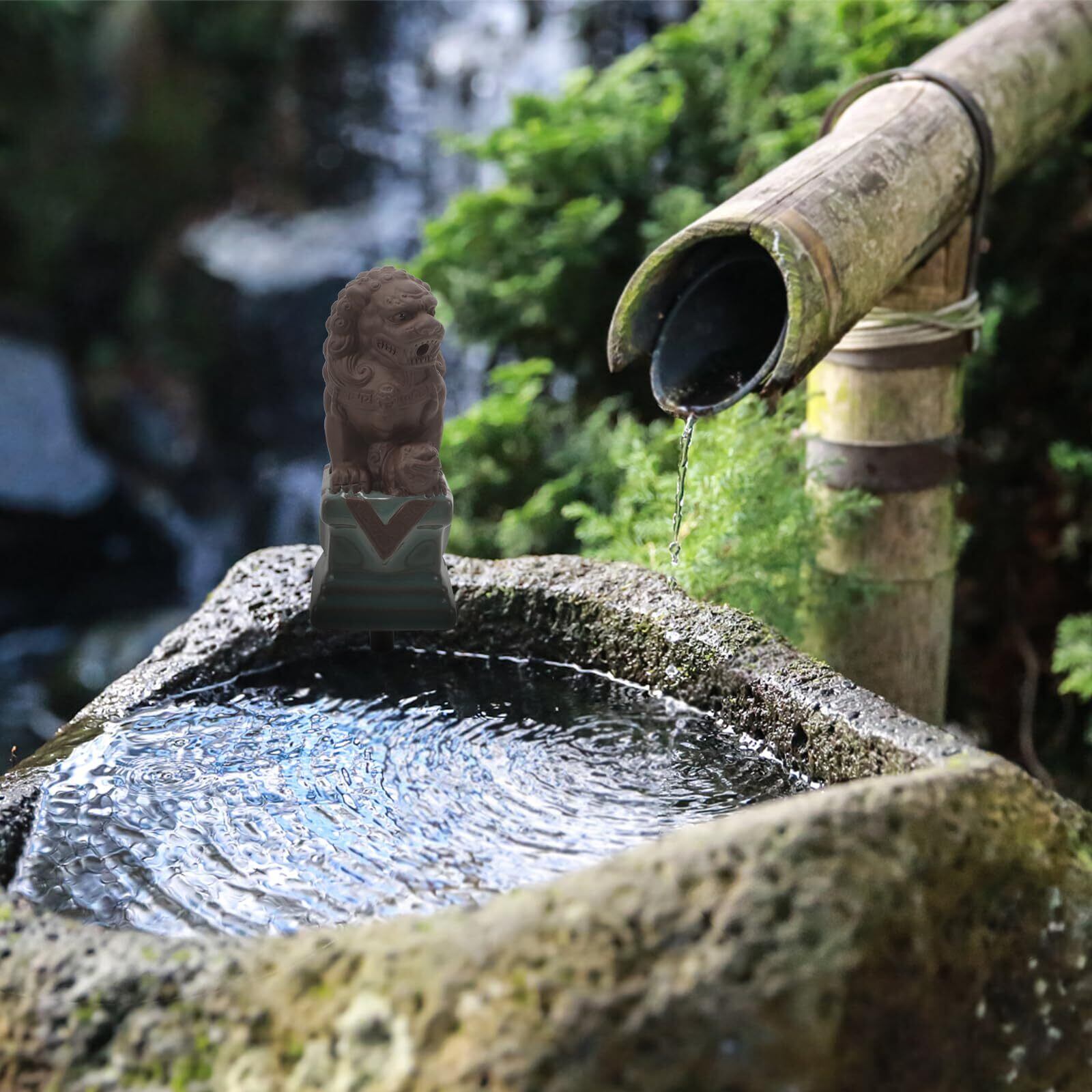 POPETPOP 卓上噴水 狛犬 水 流れる インテリア ミニ噴水 セラミック シーサー 装飾 水槽