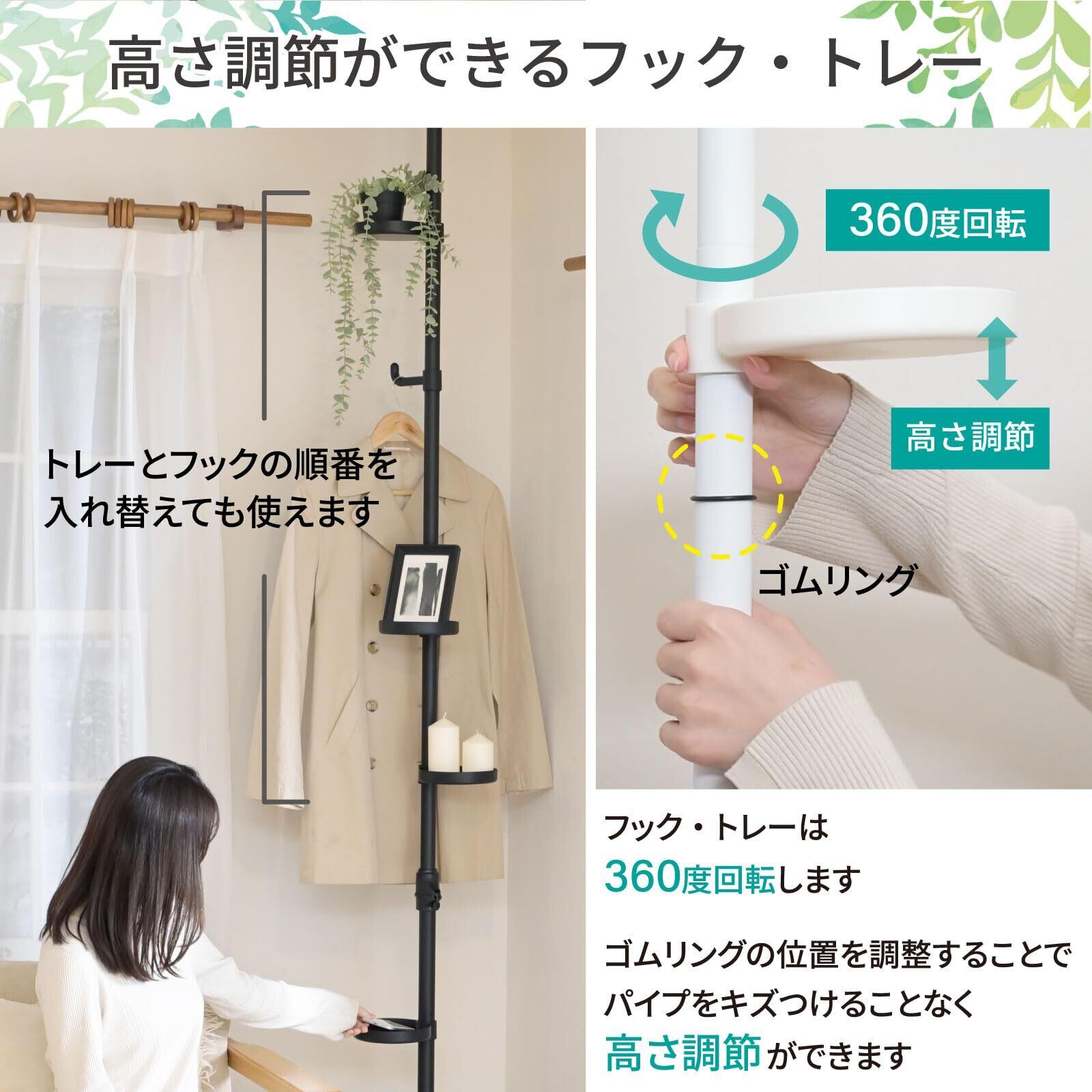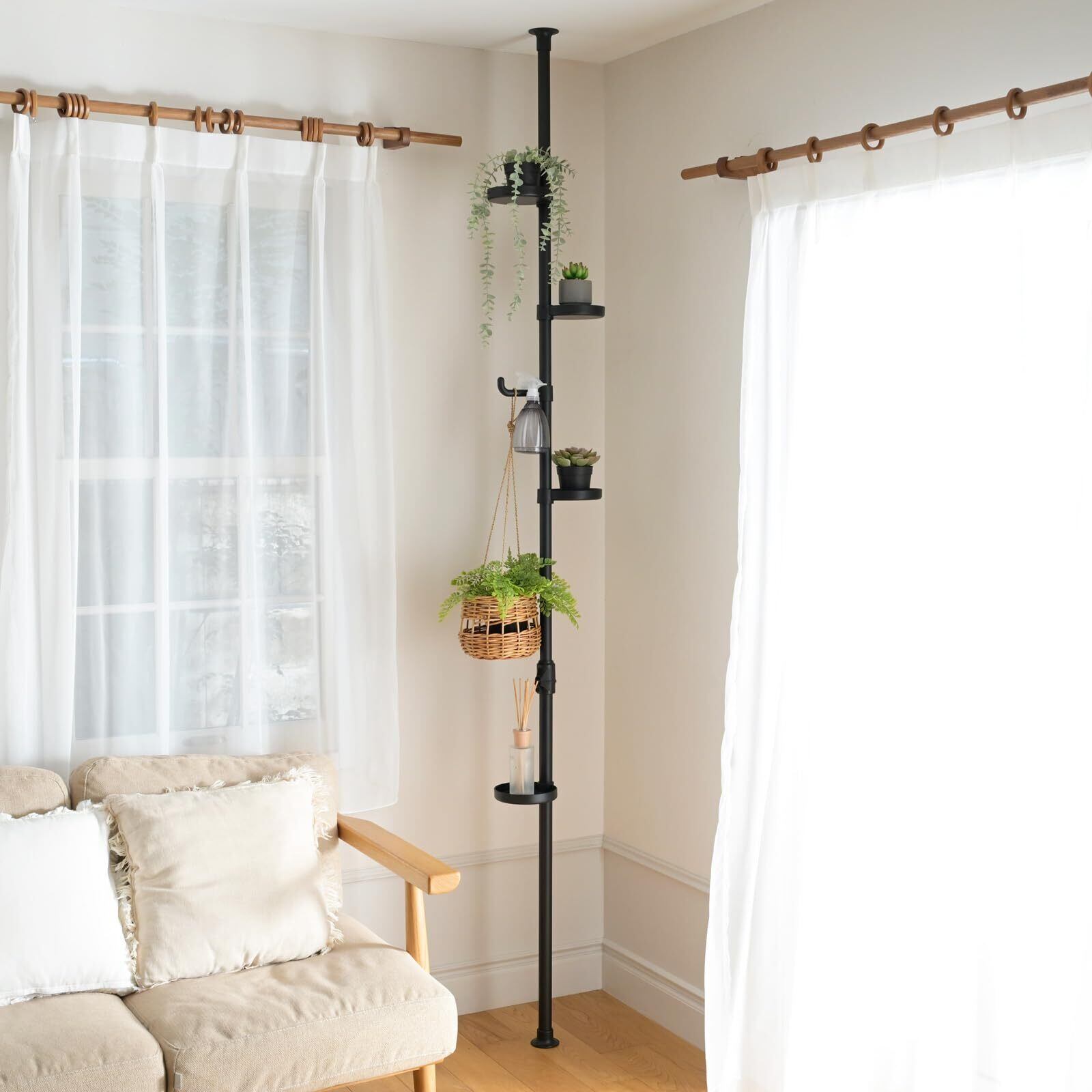 山善(YAMAZEN) 突っ張り ラック ポールハンガー プランタースタンド 設置簡単 (トレー4個・フック1個付き) ワンタッチ突っ張り (実用新案取得済) 幅30×奥行30×高さ190-260cm フラワースタンド ボタニカル 室内 組立品 マットブラック WJE-12RM(MBK) | Bloomia