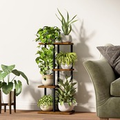 4段レイヤーで植物の層次感演出:多層式レイアウトで、下段から順番に花瓶・観葉植物・香り草・小物収納が可能!各段の高さ差を活かした配置で、天井光を効率的に受けられるため、植物の光合成が促進されます。縦長空間の家屋やコンパクトルームでも、視覚的に空きが広がるモダンな収納アイテムです