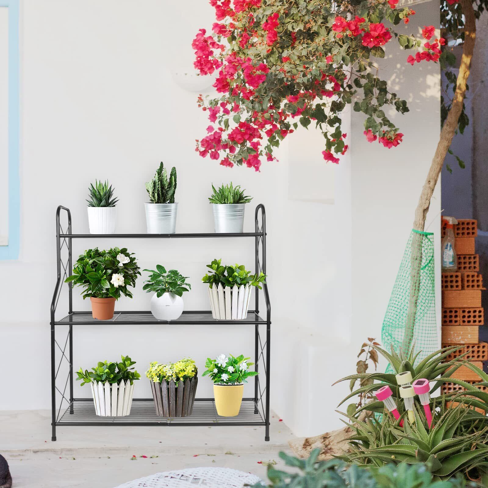 フラワースタンド 鉄製 植物スタンド 3段 ガーデンラック 室内 屋外 園芸ラック 多機能収納ラック シューズラック 観葉植物 棚 花台 67.5*28.5*77.5cm (ブラック) | Bloomia
