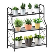 フラワースタンド 鉄製 植物スタンド 3段 ガーデンラック 室内 屋外 園芸ラック 多機能収納ラック シューズラック 観葉植物 棚 花台 67.5*28.5*77.5cm (ブラック)