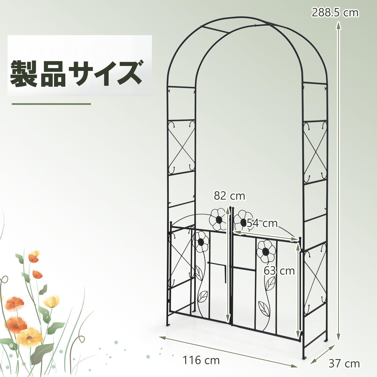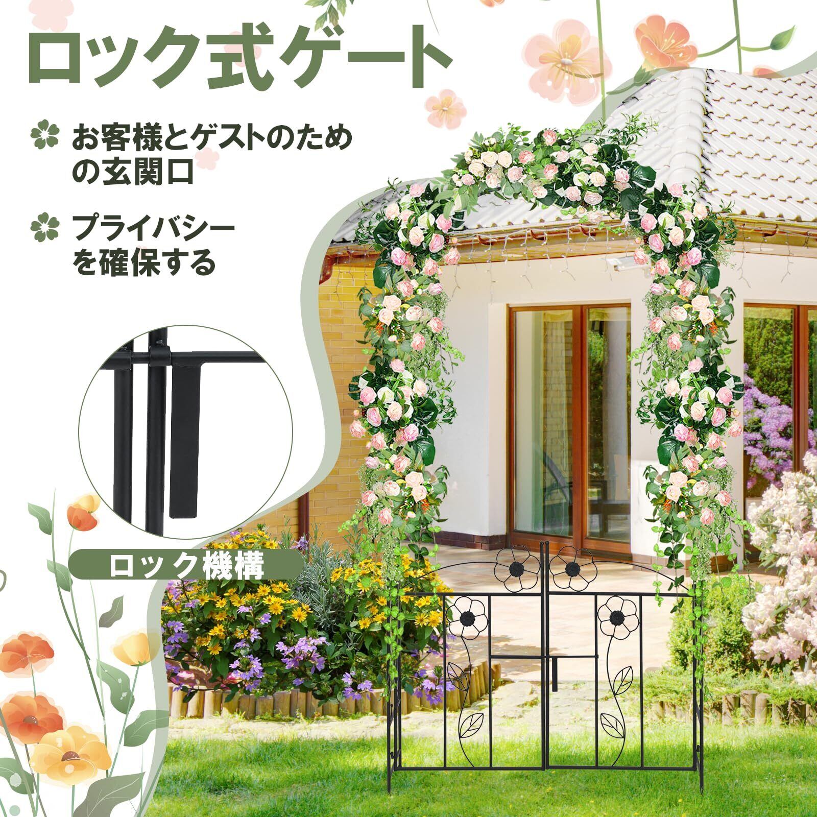 TANGKULA 鉄製アーチ 扉付き ガーデンアーチゲート 立体構造 バラアーチ アイアンアーチ ガーデニング用品 幅116cm 奥行37cm 高さ228cm パーゴラ 結婚式 園芸 菜園 玄関 バラ つる 花立て 耐候性 組み立てやすい 花模様の装飾 | Bloomia