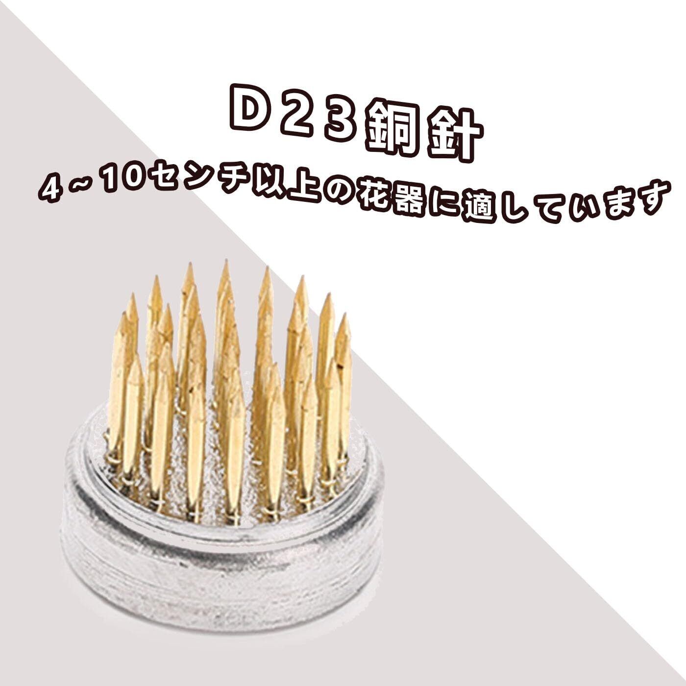 【細かい銅針、堅固な生け花】日本式の銅針設計で、針の密度がちょうどよく、細い枝を固定するのに適している。細い枝には、生け花専用テープで縛って挿入し、生け花がより強固になり、作品全体の美しさを高めることをお勧めします