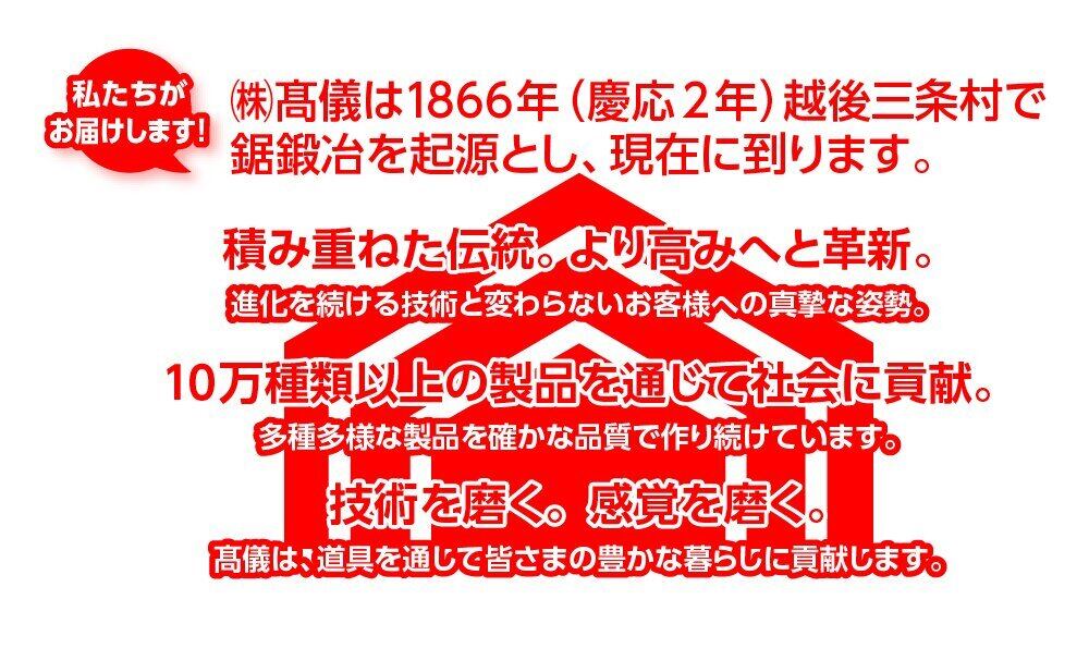 (株)高儀は1866年(慶応2年)越後三条村で鋸鍛冶を起源とし、現在に到ります。