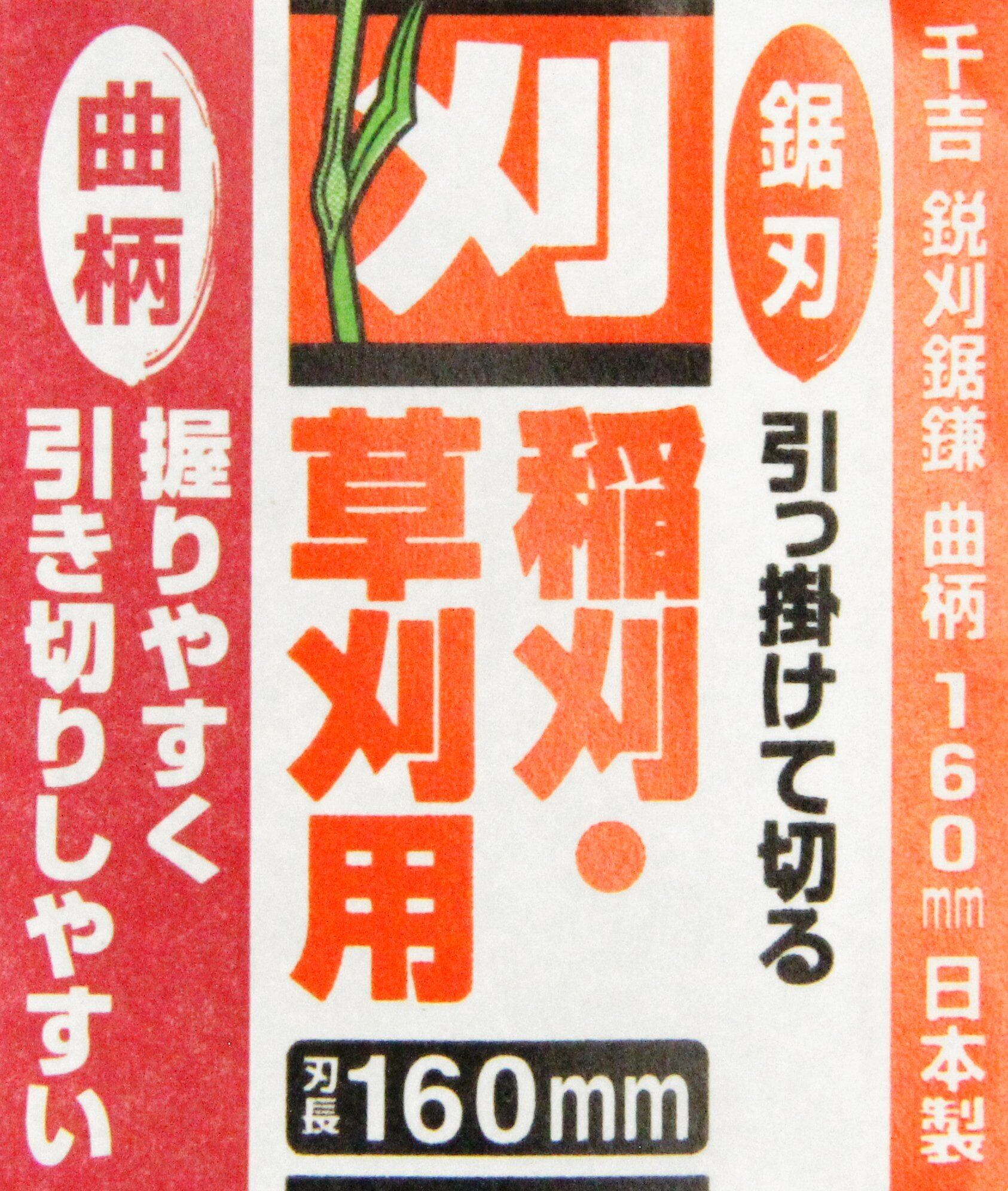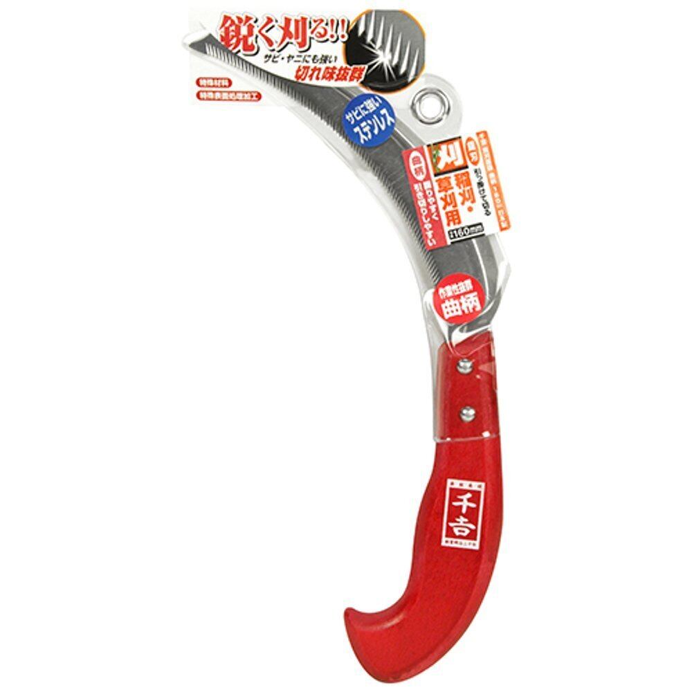千吉 かま 鋭刈鋸鎌 曲柄 中目 刃長160mm 稲刈・草刈・除草用 鋸刃 赤グリップ 奥行1×高さ30×幅13cm