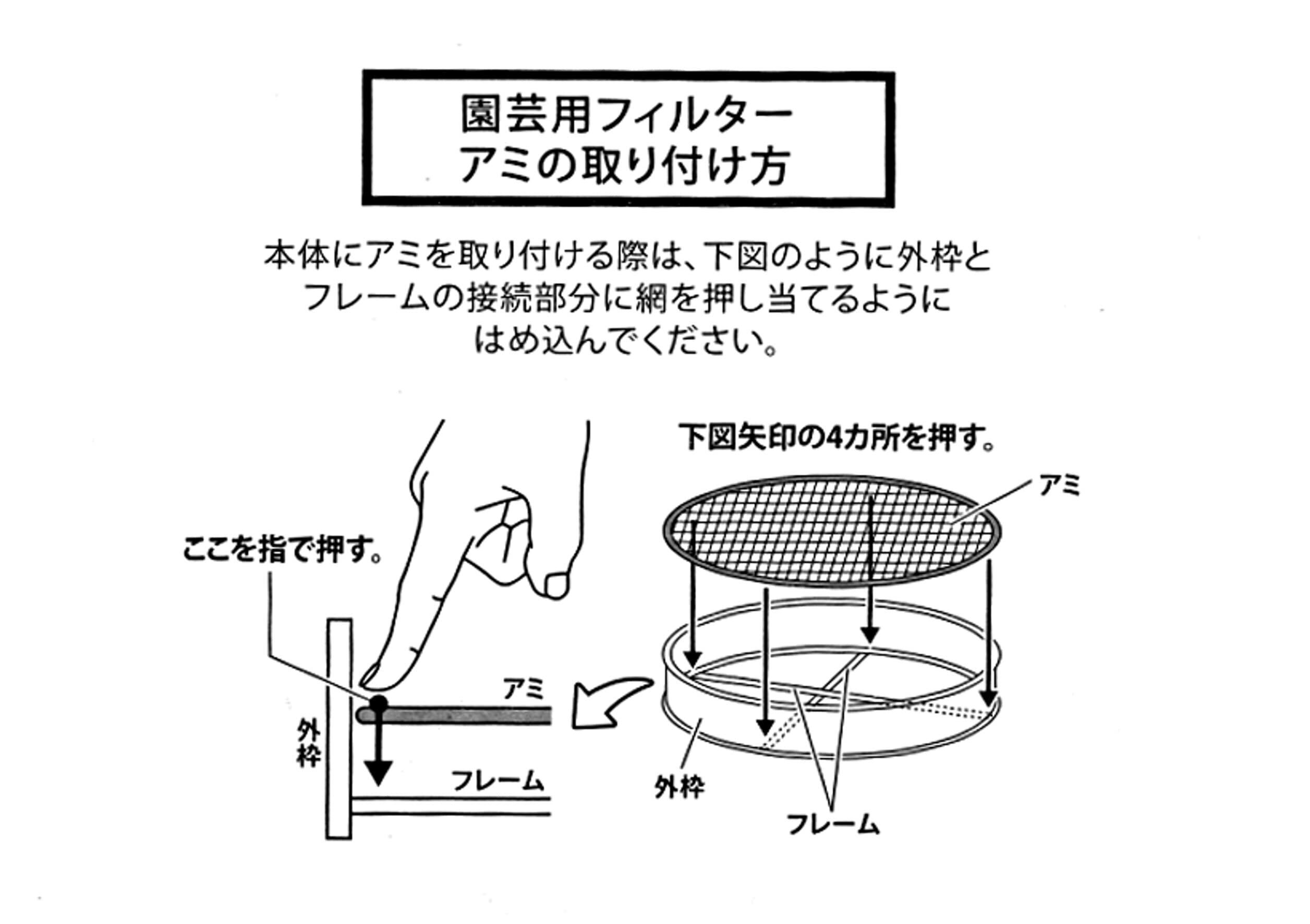 土ふるいの際にご利用いただくステンレス製土ふるい(園芸フィルター)セットです。