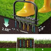【効率的な14本スパイク設計で作業を快適に】この芝生 エアレーション道具は、鋭く丈夫な15本のスパイク(長さ5.8cm)を備えています。一般的な4本スパイクの芝生 コアリングツールに比べ、一度に多くの穴を開けられるため、作業時間を大幅に短縮。芝生 エアレーションスパイクとしても優秀で、作業の手間や疲労を減らします。プラスチックや金属製の従来の芝 スパイク靴の不安定さや壊れやすさを気にせず、快適な作業が可能です。