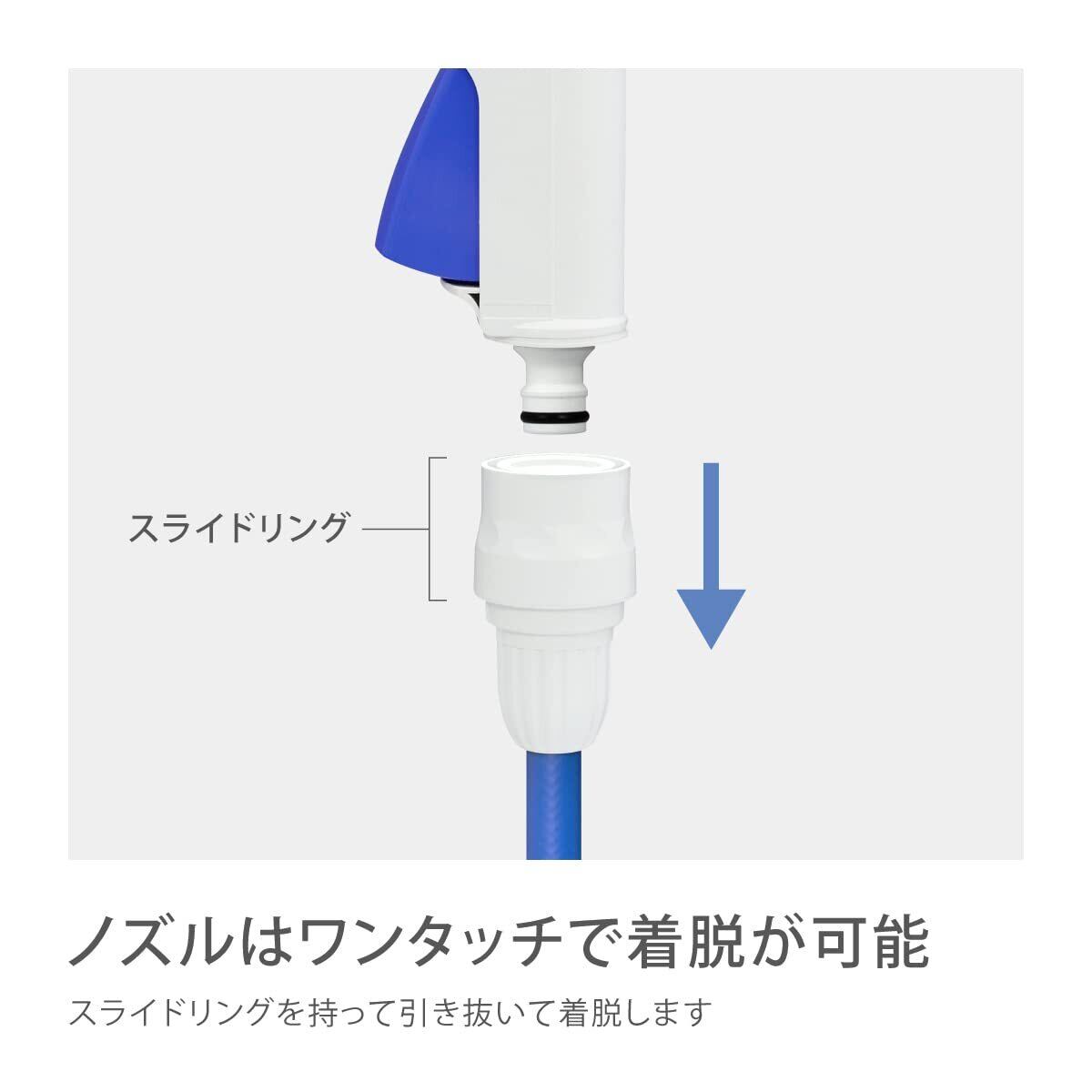 通水したまま取り外しても水が噴き出さず、ワンタッチでノズルを交換できるコネクターを付属しています。