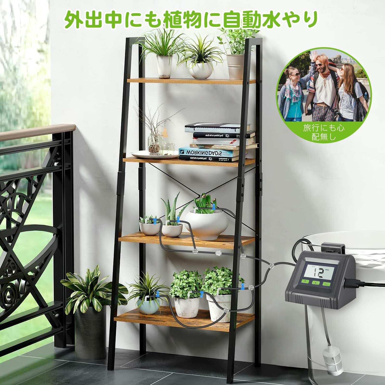 【最大10鉢の鉢植え水やりが可能】自動水やり器が最大10鉢の鉢植えを同時に散水できます。手動・自動モード両方が設定できます。水やりの継続時間、頻度や開始時間が設定できます。使用簡単で、散水タイマーは、庭、盆栽、果樹、畑、花壇、鉢植えなど、多種多様な場所で使用できます。