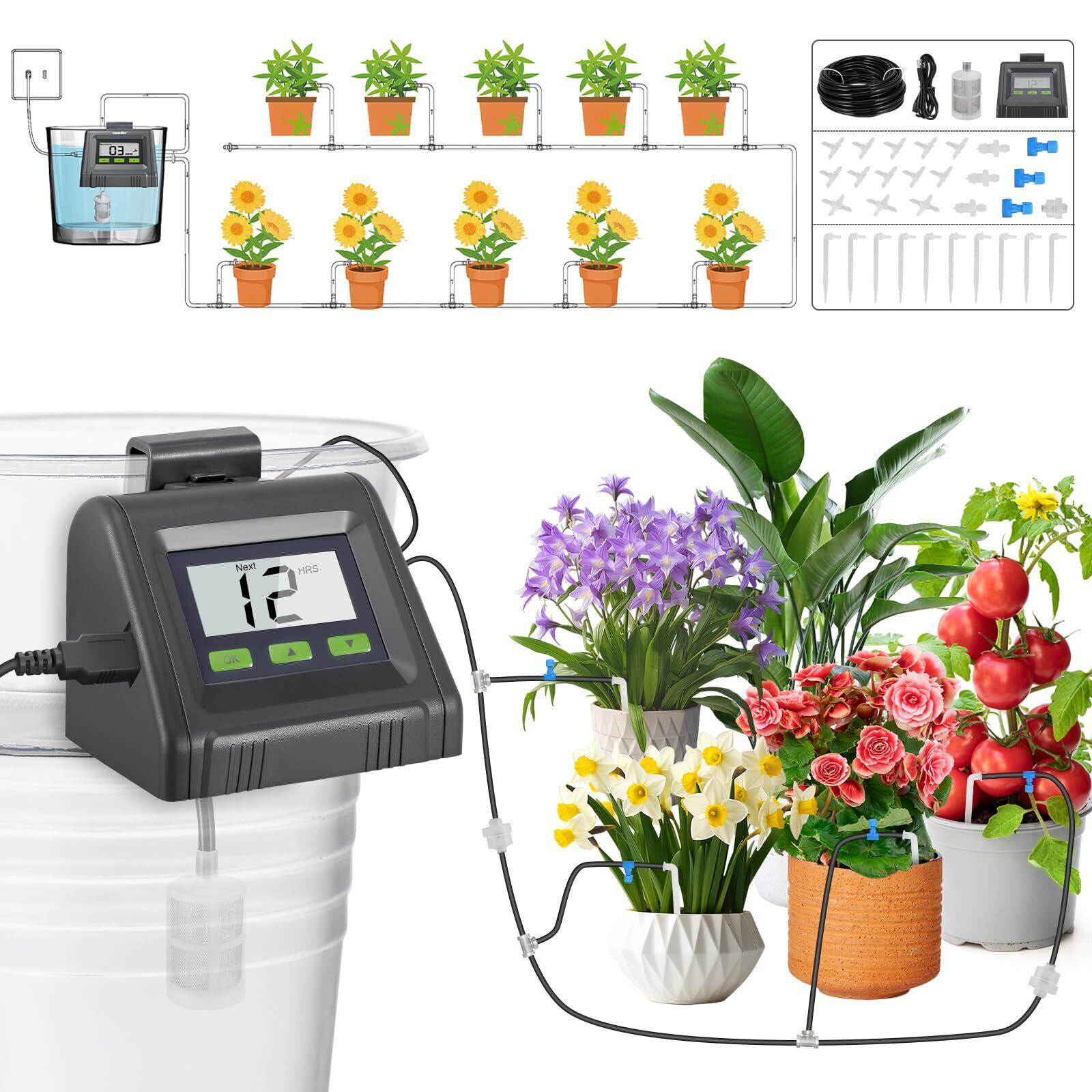 散水タイマー 鉢植え自動水やり器 予約自動散水 大画面防水LEDパネル 自動水やり 鉢植え自動散水ドリップ 自動水やり器 10mホース付き 灌漑タイマー USBや電池駆動 鉢植え 畑 庭 芝生 園芸 水撒き(10鉢対応) | Bloomia