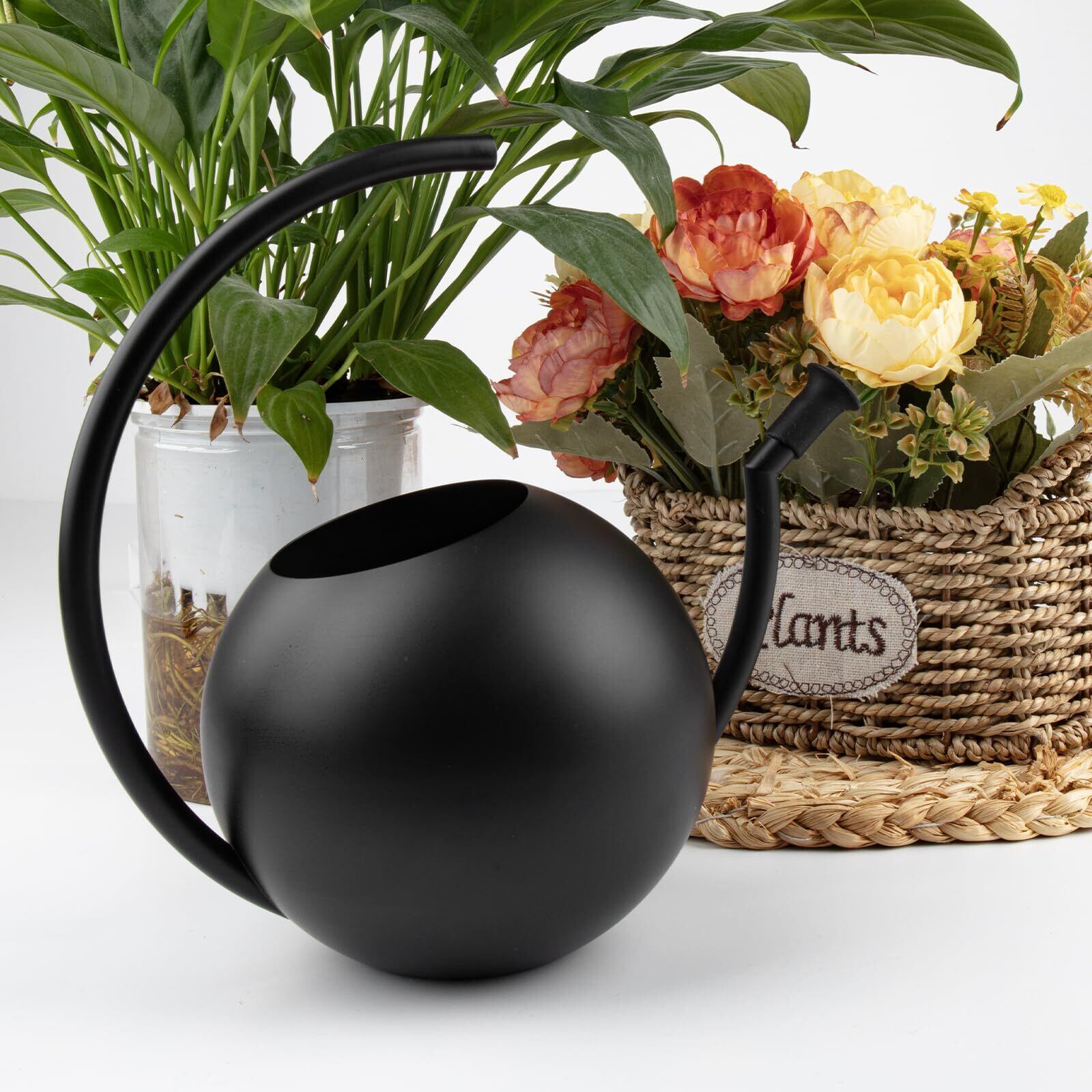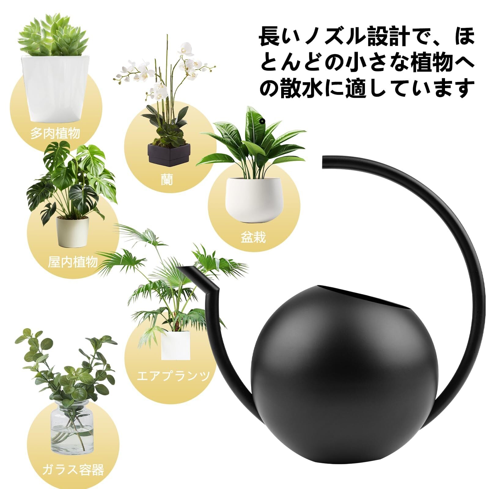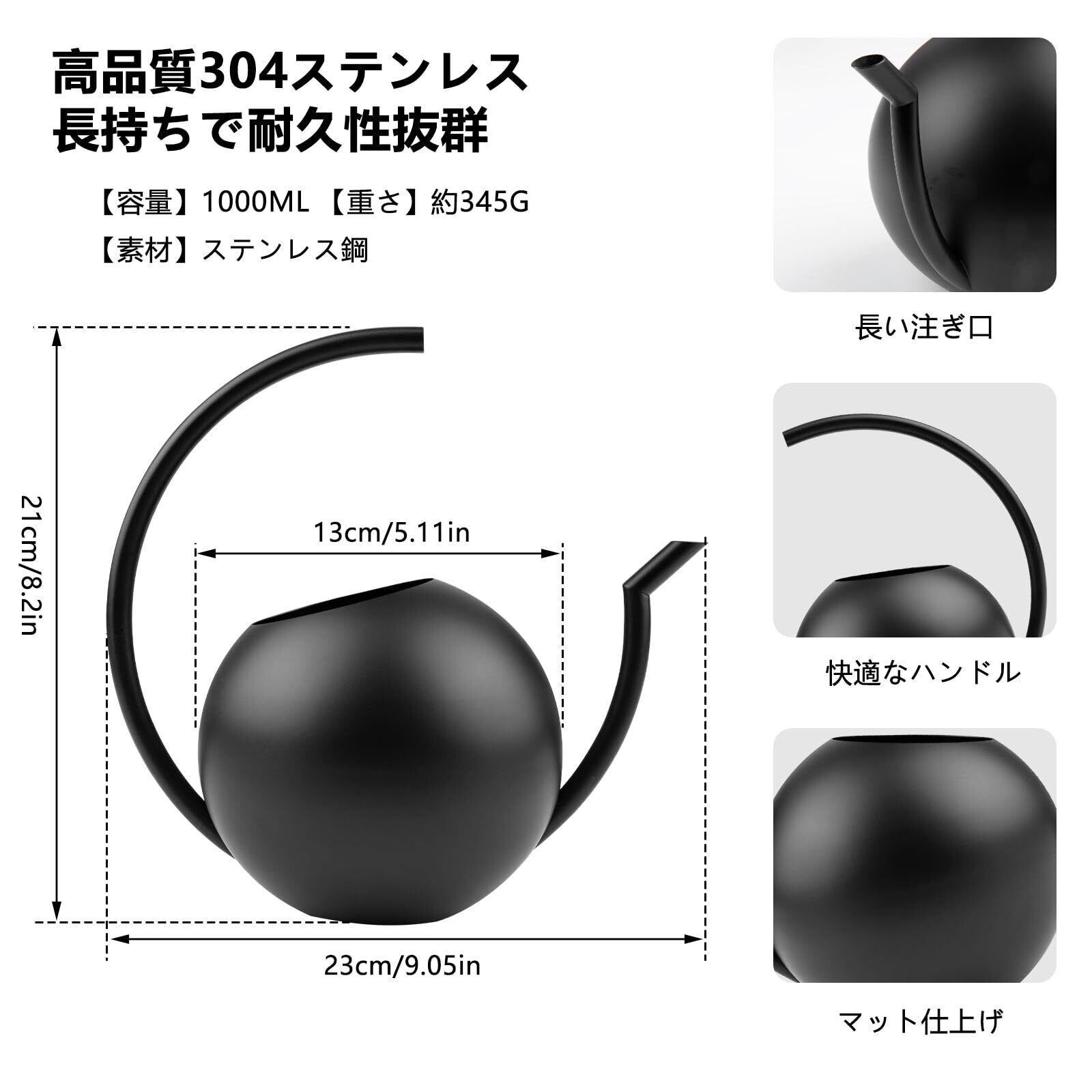 SinRenn じょうろ ステンレス製 1000ml ラウンド ガーデニングじょうろ 北欧風 大容量 ジョウロ ファッション ウォーターポット 水差し ピッチャー 散水用具 長持ち 手軽 水やりじょうろ ボトル ケトル 室内室外じょうろ ガーデニング 水差し 水さし 小さな多肉植物 園芸用 掃除用 観葉植物用 持ち運びやすい 細いノズルと大きな持ち手 ステンレスじょうろ (ブラック) | Bloomia