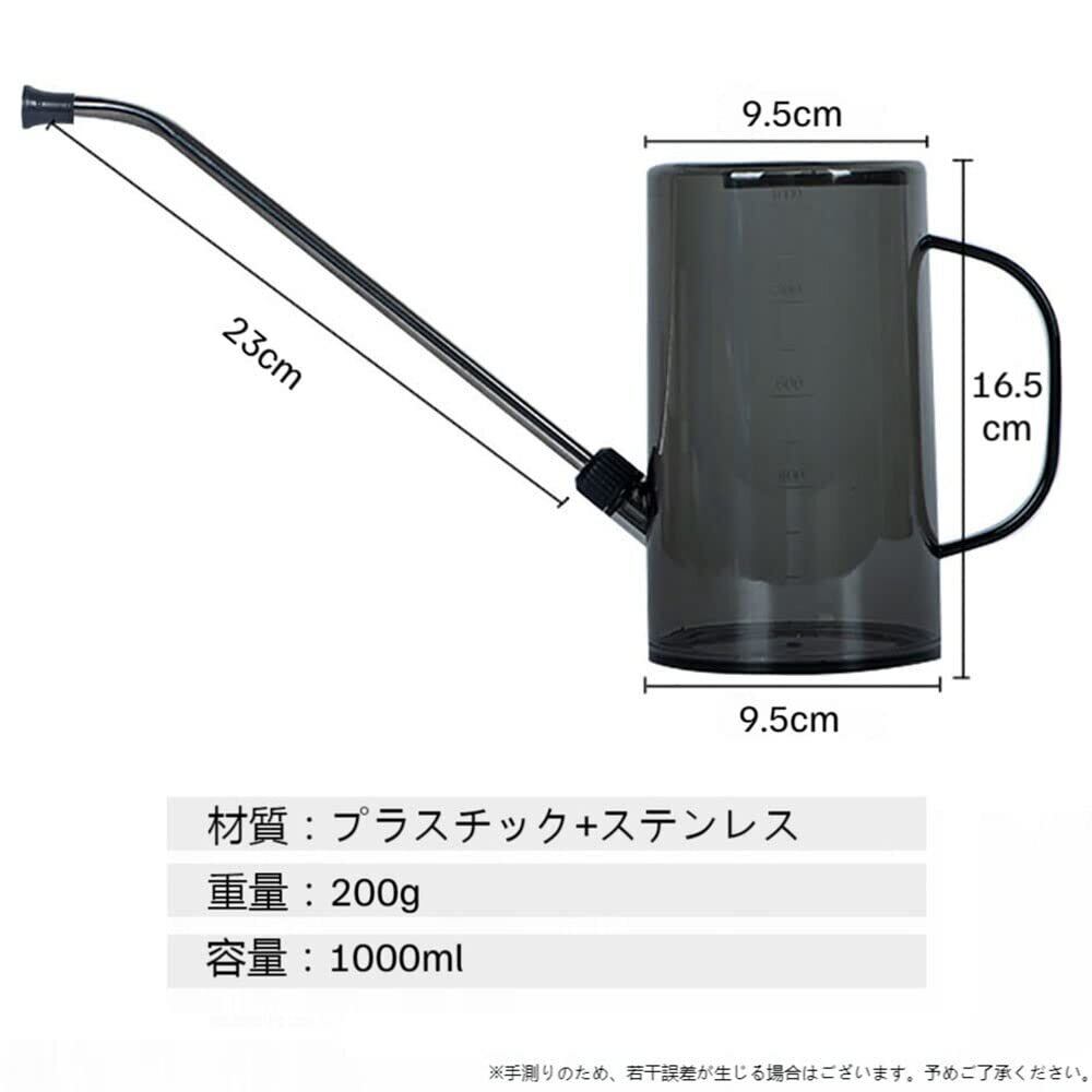 じょうろ 水差し ジョウロ 1L 透明 如雨露 目盛り付き プラスチック製 おしゃれ 観葉植物 ガーデン 散水用具 園芸用品 ブラック