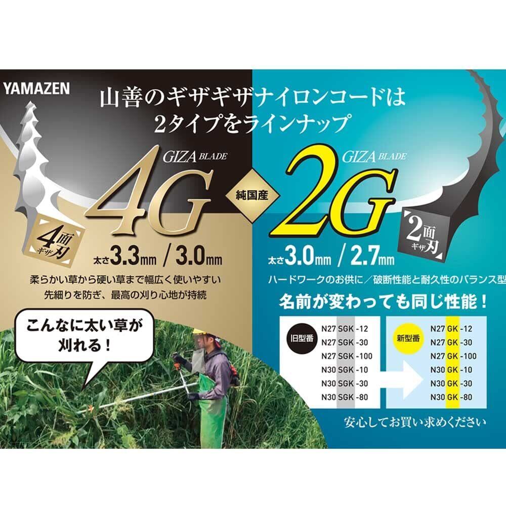 山善(YAMAZEN) ナイロンコード 刈払機用 差込み式 (太さ3.0mm/コード30m) 4Gブレード 4面ギザ刃 替え刃 草刈機 刈払機 石 タイル 雑草 除草 荒地 N30GN-30