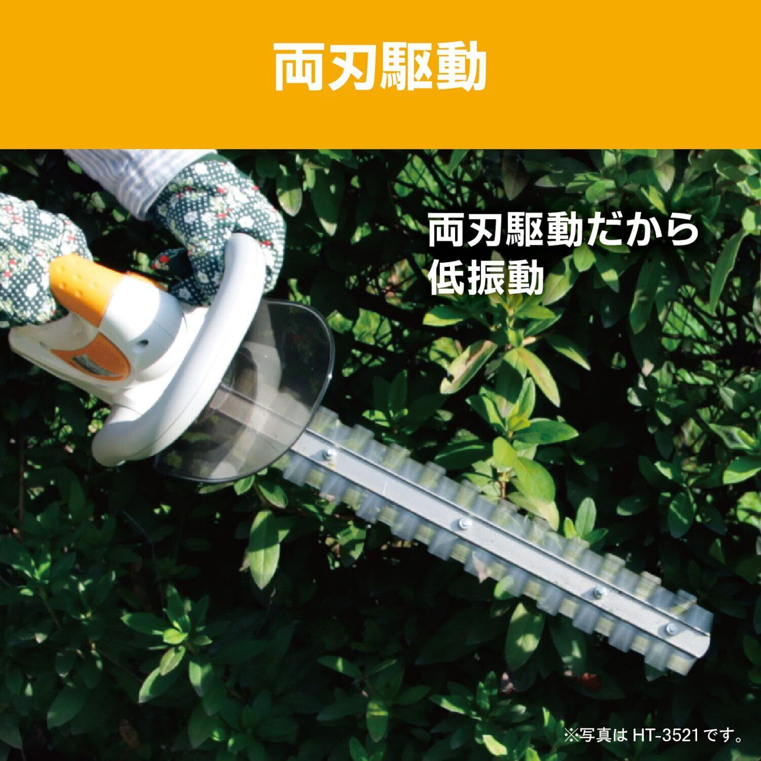 京セラ(Kyocera) 旧リョービ ヘッジトリマ HT-3521 刈込幅350mm 693651A 【3面研磨刃と振動を吸収するスーパーゲルグリップで鋭い切れ味と快適な剪定】 スタンダード刃 ニッケルコーティング 刈込幅350mm 両刃駆動 最大切断枝径15mm | Bloomia