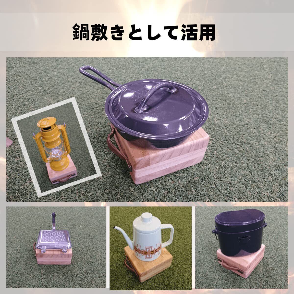 鍋敷き・物置としての使用もお勧めです。見た目は、お洒落、扱いやすバント付き、持ち運びも保管も楽! 薪割り以外、ちょっとした作業台としても使いやすいです。
