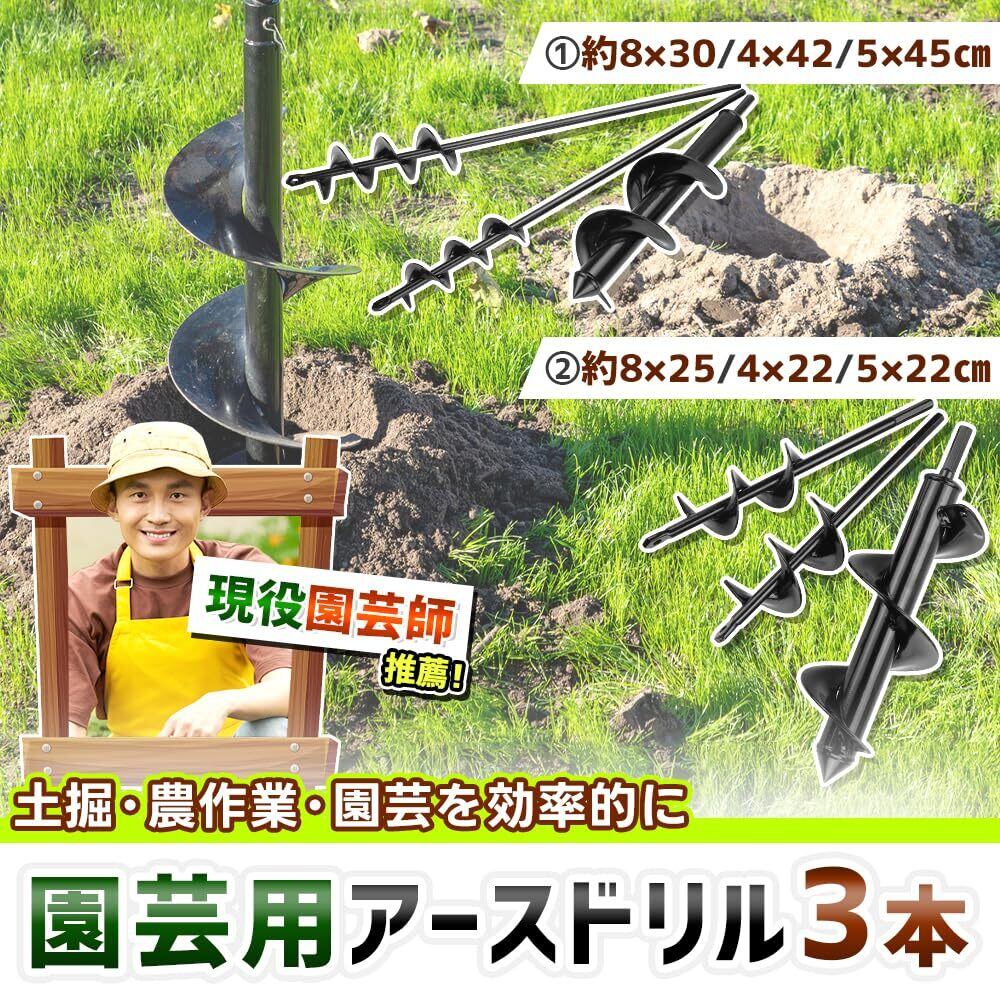 【現役園芸師が推薦】 園芸用アースドリル 3サイズセット 穴掘り 園芸 穴あけ器 電動工具 DIY 農業 オーガードリル ビット (ロングセット)