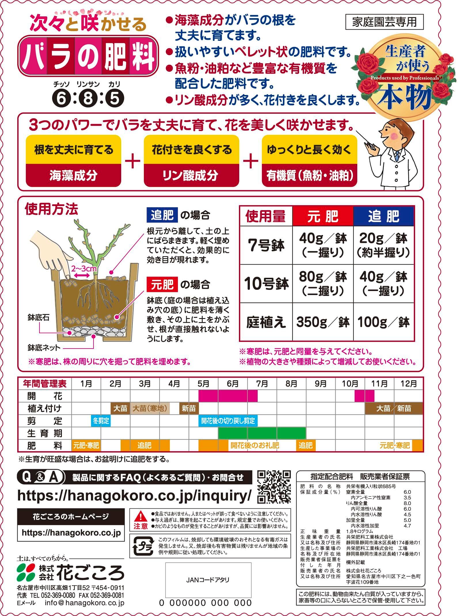 花ごころ バラの肥料 生産者が使う本物 1.8kg
