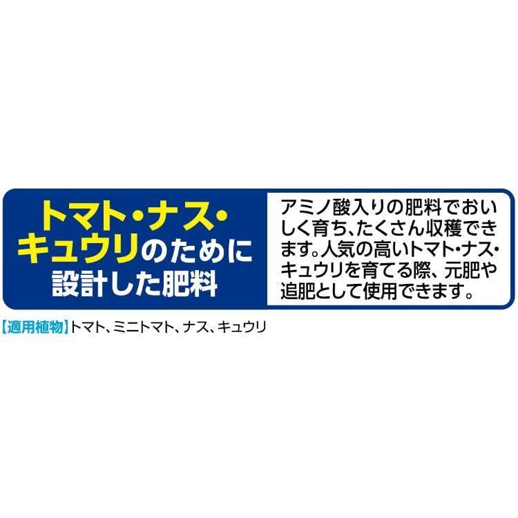 RC100配合!トマト・ナス・キュウリのために設計した肥料 土壌環境を改善するRC100(放線菌入たい肥)を配合しています。[肥料タイプ:元肥、追肥] ●対象の野菜に合わせた肥料設計 家庭園芸で人気の野菜のために設計した専用肥料。有機アミノ酸入りで、野菜が大きくおいしく育ちます。 ●元肥にも、追肥にも使える ●肥料効果が約2ヵ月※持続 溶出速度が異なる肥料が配合されているので、すばやく効くと同時に約2ヵ月※の持続効果もあります。 ※植物の種類や生育状況、栽培環境によって肥効期間は異なります。 ●1380種から厳選したRC100(放線菌入たい肥)配合 バイオスティミュラント資材としてRC100(放線菌入たい肥)を配合。土壌中の悪玉菌※の増殖を阻害する働きがある放線菌を、土壌微生物の餌となるたい肥に混合しています。土壌フローラを整え土壌改良を行う効果があります。 ※フザリウム [バイオスティミュラント]とは・・・植物や土壌が持つ本来の力を引き出して、植物の健全な成長を助ける成分や微生物の総称。