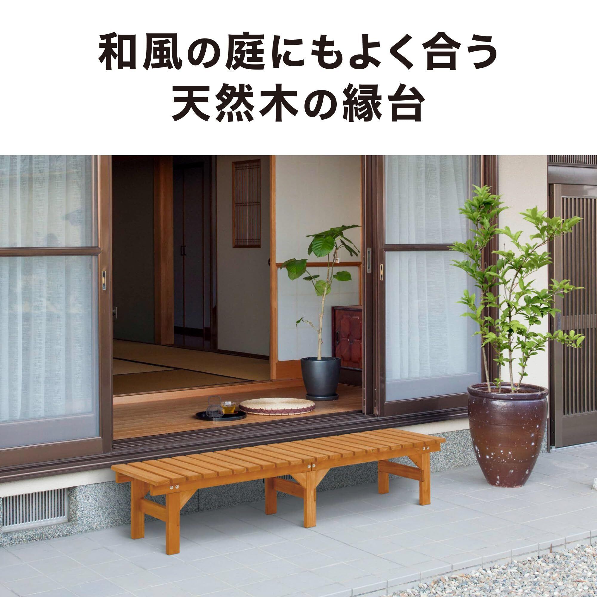 和風の庭にもよく合い、あたたかみのある天然木の縁台。