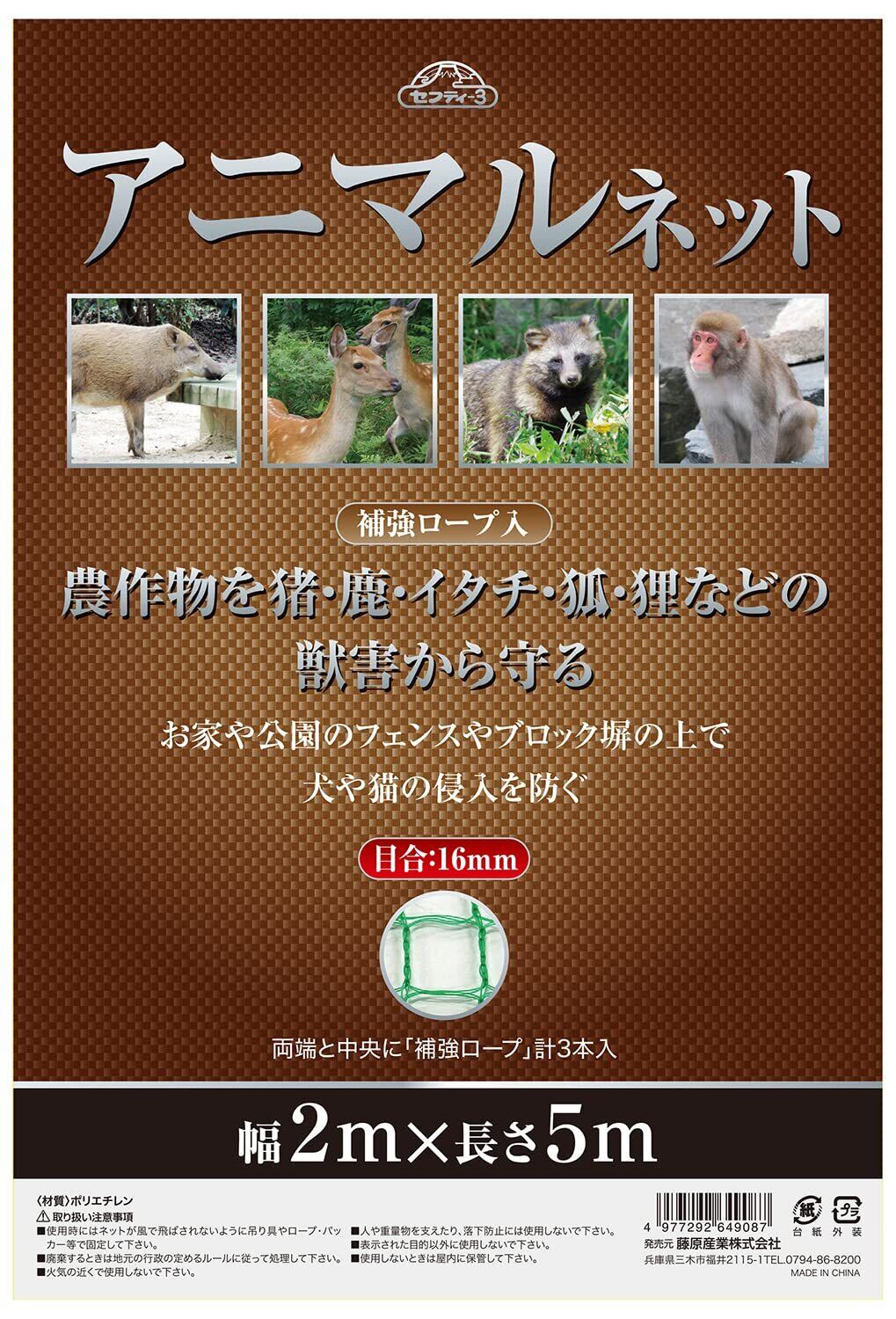 セフティー3(Safety-3) アニマルネット 目合16mm 2m×5m グリーン