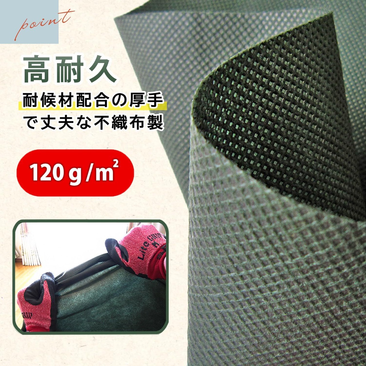 【通気性に優れた厚手で丈夫な不織布を使用】:通気性が良く厚手で丈夫な不織布製で、中に何も入れていなくても自立。