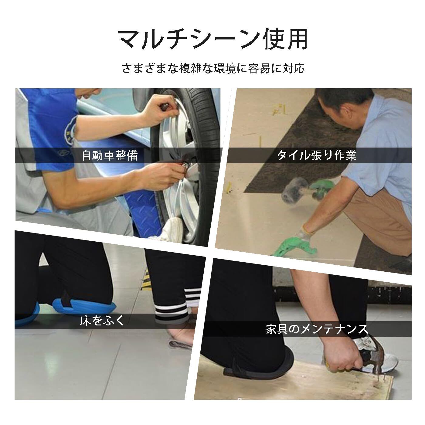 【こうしつざいりょう】:膝当ては高品質EVA材料で作られ、優れた強度と耐久性を持ち、長時間の使用中に信頼性の高いパフォーマンスを提供し、膝を永続的に保護することができます。