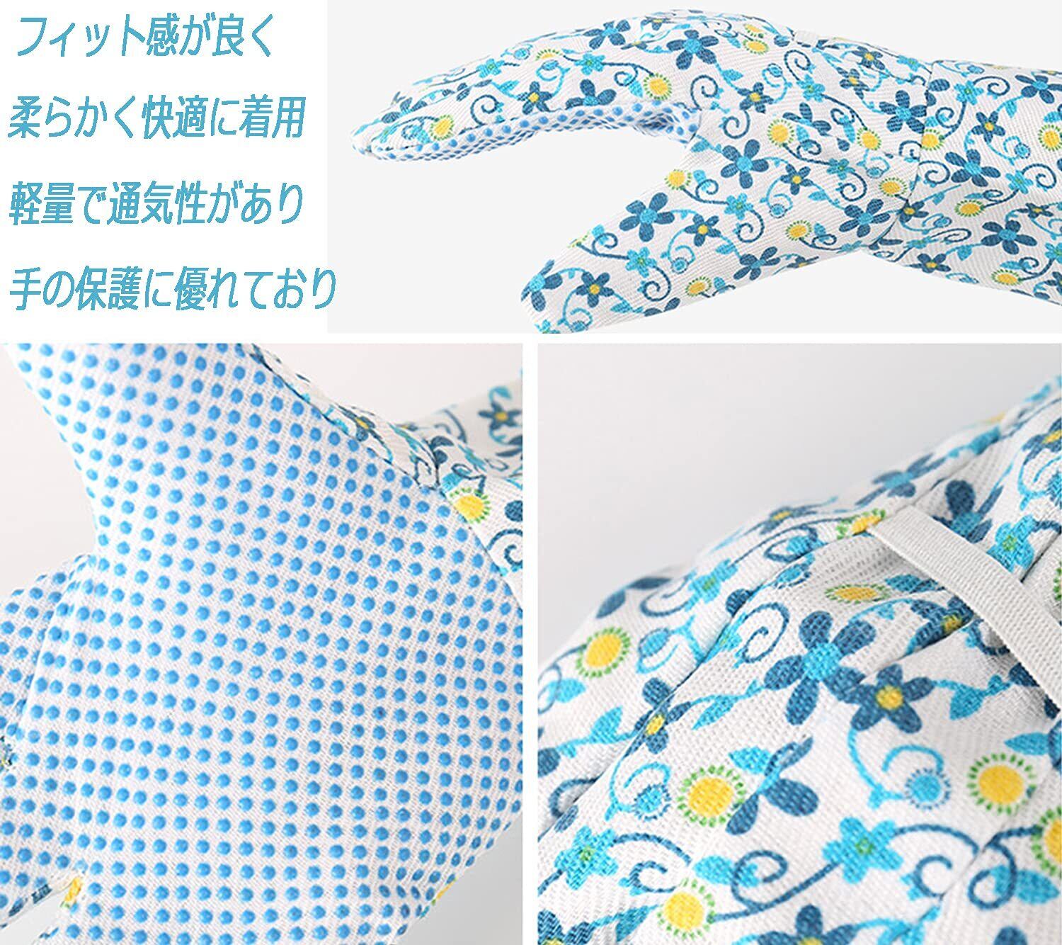 [Longbest] ガーデングローブ 小花柄 お洒落な手袋 Mサイズ 女性用ガーデニング手袋 作業用手袋 園芸用手袋 滑り止め 多機能手袋 手を保護 使いやすい 通気性優れ ソフトPVCドットラバーコーティング | Bloomia