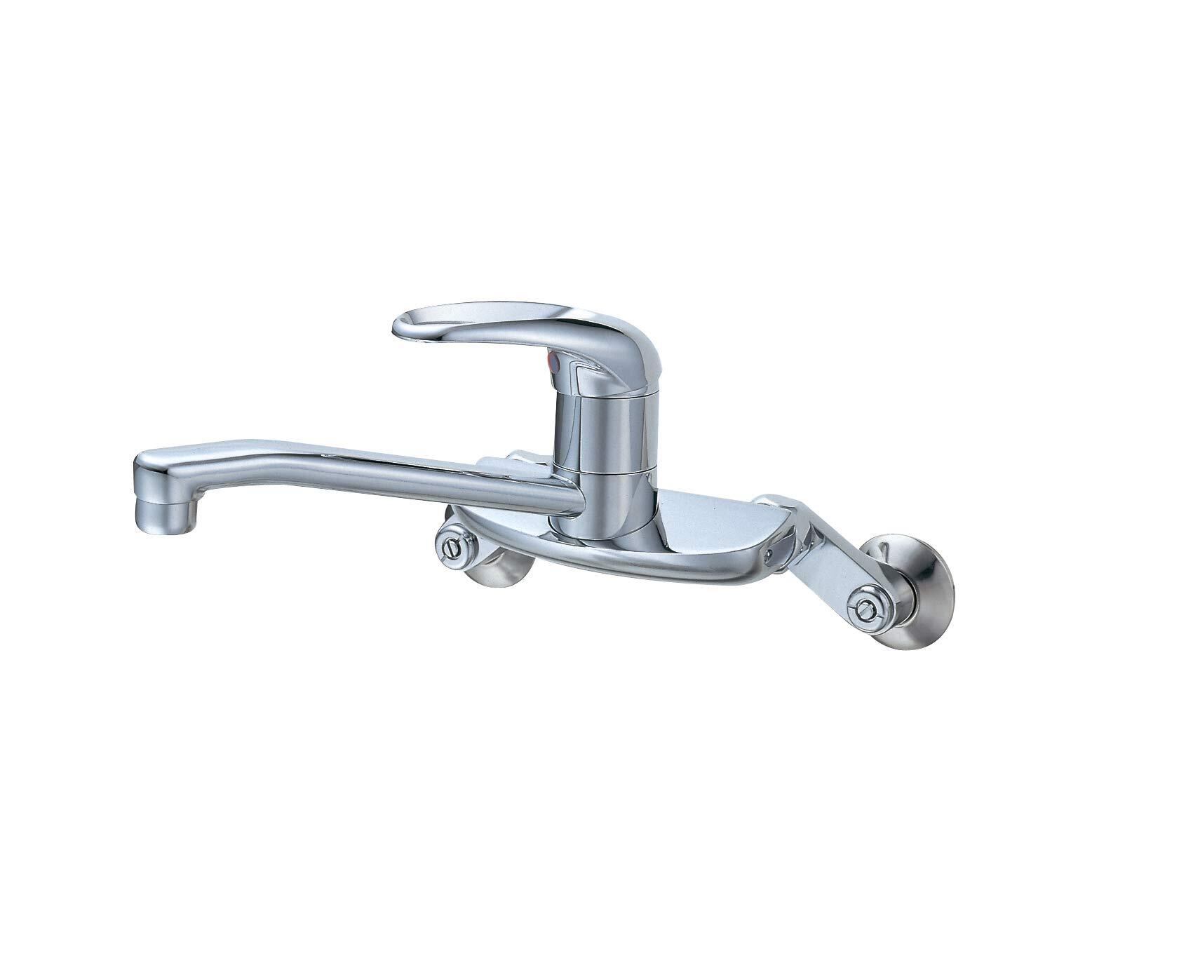 SANEI(サンエイ) シングルレバー混合栓 キッチン用 壁付き 上向きパイプ スペース広々 オールメッキ CK2710-13