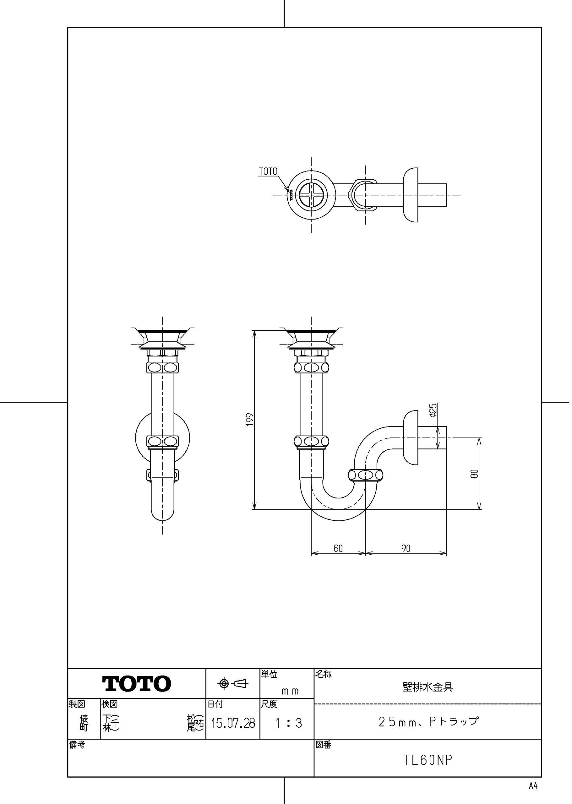 TOTO 壁排水金具(25mm、Pトラップ) TL60NP