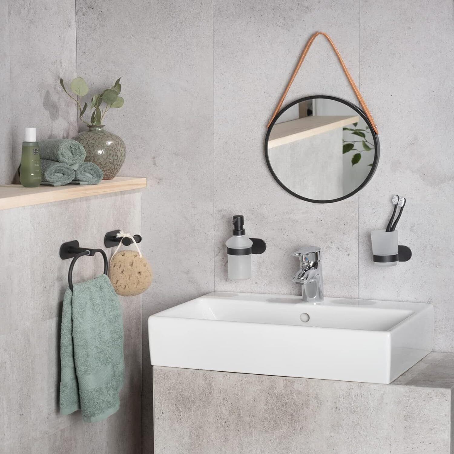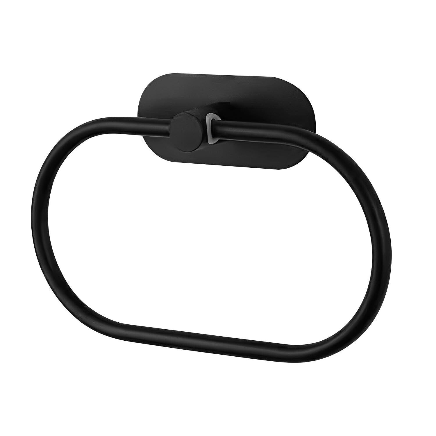 タオルリング タオル掛け 強力両面テープ 粘着性高い 穴開け不要 取り付け簡単 ステンレス製 壁付け キッチン 洗面所 台所 浴室 用 ブラック