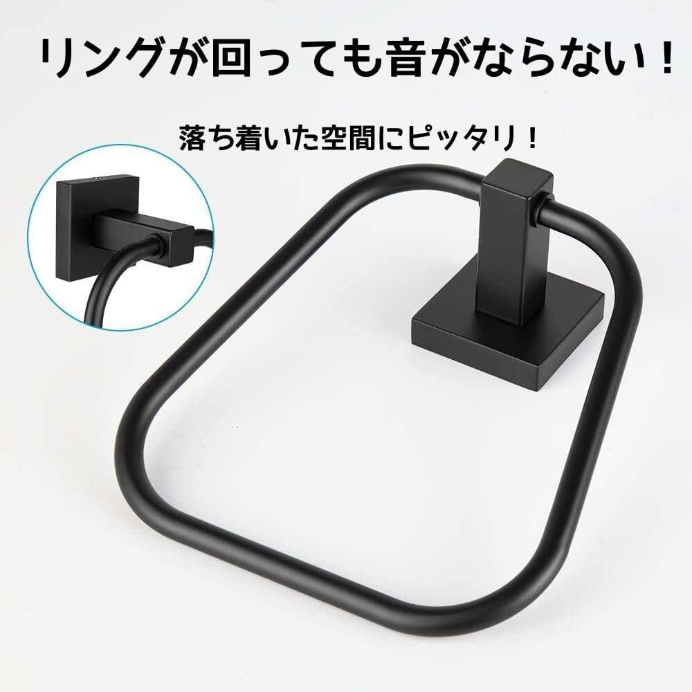 YWHWLX タオルリング ステンレス 壁掛け タオル掛け タオルハンガー おしゃれ シンプルモダン タオルホルダー タオルハンガー トイレ 洗面所 キッチン お風呂用 ブラック ネジ付き (矩形) | Bloomia