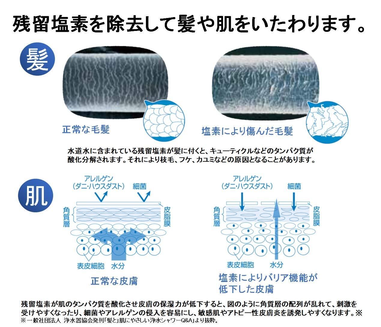 【髪や肌をいたわりたいあなたに】髪や肌にダメージを与える残留塩素をしっかり除去。