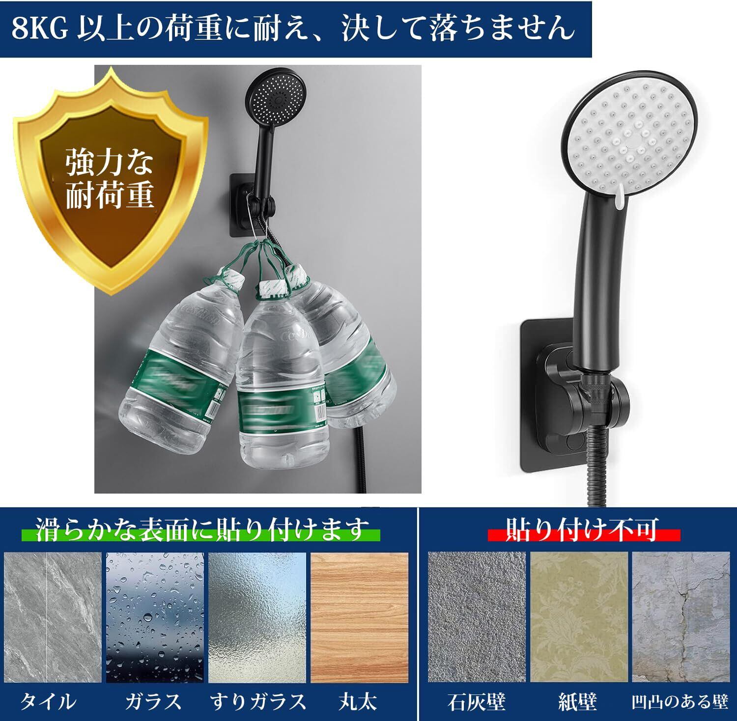 穴あけ不要・粘着力も強い:このシャワーヘッドホルダーは穴を開ける必要がなく、取り付けが簡単で、接着剤を剥がすだけで簡単に壁に貼り付けることができます。(冬の浴室は湿気が多いので、ヘアドライヤーで壁に直接風を当てて除湿し、接着剤がしっかりと貼り付くようにしてください。設置後は、12時間静置すると効果がより高まります)