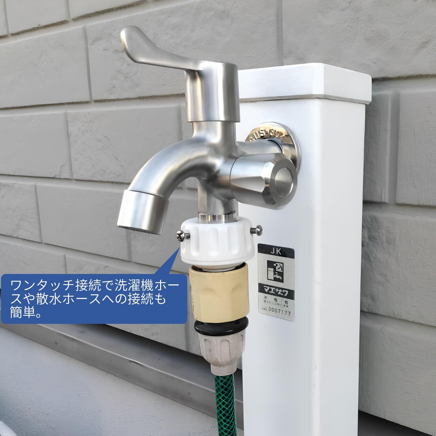 水道 蛇口 二股 洗濯機用 二口 水栓 屋外 ホース接続ニップル付き ガーデン 水栓柱 散水栓 水道 分岐 ステンレス製 防錆 壁付け G1/2 呼び13 ジョインター接続 (A:二股蛇口) | Bloomia